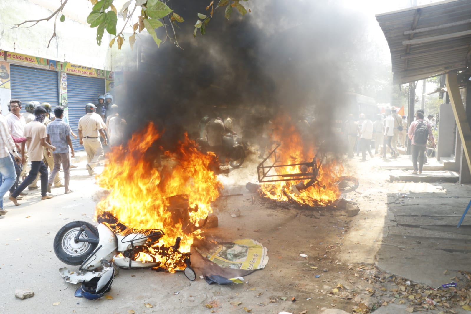 ನಿಷೇಧಾಜ್ಞೆಯ ನಡುವೆಯೇ ಗೋಪಾಳದ ಕೊರಮ ಕೇರಿ ಮತ್ತು ಟಿಪ್ಪುನಗರದ 6ನೇ ತಿರುವಿನಲ್ಲಿ ಕಿಡಿಗೇಡಿಗಳು ಮೂರು ವಾಹನಗಳಿಗೆ ಬೆಂಕಿ ಹಚ್ಚಿರುವ ಘಟನೆ ಮಂಗಳವಾರ ಮುಂಜಾನೆ ನಡೆದಿದೆ.