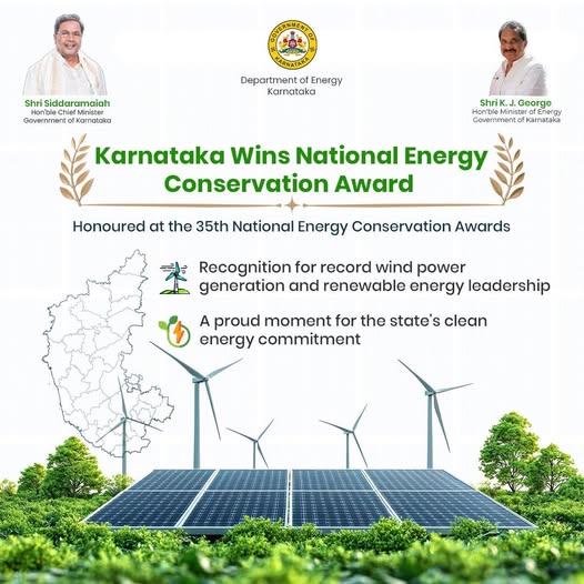 ಇಂಧನ ದಕ್ಷತೆ ಕಾರ್ಯಕ್ಷಮತೆ ಪ್ರಶಸ್ತಿಯ ಎಸ್ಡಿಎ ವಿಭಾಗ-1ರ ಅಡಿಯಲ್ಲಿ ಪ್ರಥಮ ಸ್ಥಾನಗಳಿಸಿರುವ ಕರ್ನಾಟಕ 2025ರ ರಾಷ್ಟ್ರೀಯ ಇಂಧನ ಸಂರಕ್ಷಣಾ ಪ್ರಶಸ್ತಿಯನ್ನು ತನ್ನದಾಗಿಸಿಕೊಂಡಿದೆ. ಮಹಾರಾಷ್ಟ್ರ ಎರಡನೇ ಸ್ಥಾನದಲ್ಲಿದೆ.