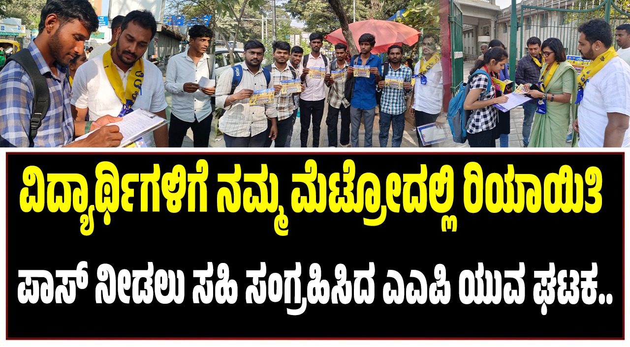 ನಮ್ಮ ಮೆಟ್ರೋದಲ್ಲಿ ವಿದ್ಯಾರ್ಥಿಗಳಿಗೆ ರಿಯಾಯಿತಿ ದರದಲ್ಲಿ ಪಾಸ್ ನೀಡಬೇಕೆಂದು ಆಗ್ರಹಿಸಿ ಆಮ್ ಆದ್ಮಿ ಪಕ್ಷದ ಯುವ ಘಟಕದ ಸದಸ್ಯರು ವಿದ್ಯಾರ್ಥಿಗಳಿಂದ ಸಹಿಸಂಗಣ ಅಭಿಯಾನವಕ್ಕೆ ಇಂದು ಚಾಲನೆ ನೀಡಿದರು. ಅಭಿಯಾನದ ಆರಂಭವನ್ನು ನಗರದ ಆರ್.ಸಿ. ಕಾಲೇಜಿನ ಬಳಿ ನಡೆಸಲಾಯಿತು. ಇದೇ ಸಂದರ್ಭದಲ್ಲಿ ಸುದ್ದಿಗಾರರೊಂದಿಗೆ ಮಾತನಾಡಿದ ಪಕ್ಷದ ಯುವ ಘಟಕದ ರಾಜ್ಯಾಧ್ಯಕ್ಷ ಲೋಹಿತ್ ಹನುಮಾಪುರ ಮಾತನಾಡಿ ” ಅತ್ಯಂತ ದುಬಾರಿ ವೆಚ್ಚದ ನಮ್ಮ ಮೆಟ್ರೋ ದಿಂದಾಗಿ ವಿದ್ಯಾರ್ಥಿ ಸಮೂಹ ಸಂಪೂರ್ಣ ಮೆಟ್ರೋ ಅನುಕೂಲವನ್ನು ಪಡೆದುಕೊಳ್ಳಲು ಸಾಧ್ಯವಾಗುತ್ತಿಲ್ಲ.