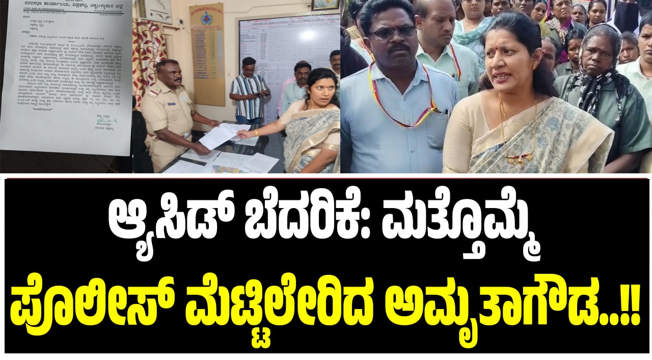 ಶಿಡ್ಲಘಟ್ಟ ಕಾಂಗ್ರೆಸ್ ಮುಖಂಡ ರಾಜೀವ್ ಗೌಡ ಪ್ರಕರಣಕ್ಕೆ ಸಂಬಂಧಿಸಿದಂತೆ ಅಮೃತಾಗೌಡಗೆ (Amrutha Gowda) ಆ್ಯಸಿಡ್ ಹಾಕುವುದಾಗಿ ಪತ್ರಯೊಂದು ಬಂದಿದ್ದು, ಬೆದರಿಕೆ ಪತ್ರದ ಸಮೇತ ಪೊಲೀಸರಿಗೆ ಮನವಿ ಮಾಡಿದ್ದಾರೆ. ಜೀವ ಭಯದಲ್ಲೇ ಕರ್ತವ್ಯ ನಿರ್ವಹಿಸುತ್ತಿರುವ ಅಮೃತಾಗೌಡ ಆ್ಯಸಿಡ್ ದಾಳಿ ಬೆದರಿಕೆ ಪತ್ರ ಬಂದಿದ್ದು ರಕ್ಷಣೆ ನೀಡುವಂತೆ ಶಿಡ್ಲಘಟ್ಟ ಟೌನ್ ಠಾಣೆ ಪೊಲೀಸರಿಗೆ ಮನವಿ ಸಲ್ಲಿಸಿದ್ದಾರೆ. ಇದಕ್ಕೂ ಮೊದಲು ಅಮೃತಾಗೌಡಗೆ ಕಾಂಗ್ರೆಸ್ ಮುಖಂಡ ರಾಜೀವ್ ಗೌಡ ಧಮ್ಕಿ ಹಾಕಿದ್ದರು. ಈ ಬಗ್ಗೆ ಅಮೃತಾಗೌಡ ಪೊಲೀಸರಿಗೆ ದೂರು ನೀಡಿದ್ದರು. ಪ್ರಕರಣ ದಾಖಲಾಗುತ್ತಿದಂತೆ ತಲೆ ಮರೆಸಿಕೊಂಡಿರುವ ರಾಜೀವ್ ಗೌಡ, ಇನ್ನು ಪತ್ತೆ ಆಗಿಲ್ಲ. ಪೊಲೀಸರು ಎಲ್ಲೆಡೆ ಹುಡುಕಾಟ ನಡೆಸಿದ್ದಾರೆ. ಇತ್ತ ಪೌರಾಯುಕ್ತೆಗೆ ಬೆದರಿಕೆ ಪತ್ರಯೊಂದು ಬಂದಿದ್ದು, ಆ್ಯಸಿಡ್ ದಾಳಿ ಮಾಡುವುದಾಗಿ ಎಚ್ಚರಿಕೆ ನೀಡಲಾಗಿದೆ.