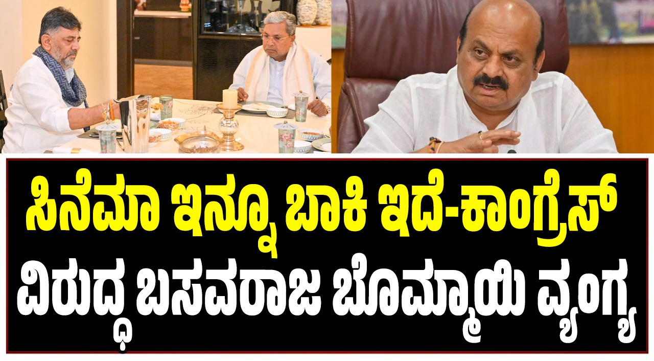 ಬೆಂಗಳೂರು: ಒಗ್ಗಟ್ಟು ಪ್ರದರ್ಶಿಸುವ ನಿಟ್ಟಿನಲ್ಲಿ ಇಂದು ಉಪಮುಖ್ಯಮಂತ್ರಿ ಡಿ.ಕೆ ಶಿವಕುಮಾರ್(D. K. Shivakumar) ನಿವಾಸಕ್ಕೆ ಸಿಎಂ ಸಿದ್ದರಾಮಯ್ಯ (Siddaramaiah) ಭೇಟಿ ನೀಡಿದ್ದು, ಬ್ರೇಕ್ಫಾಸ್ಟ್ ಮೀಟಿಂಗ್ ನಡೆಸಿದ್ದಾರೆ. ಈ ಬಗ್ಗೆ ಮಾಜಿ ಮುಖ್ಯಮಂತ್ರಿ, ಸಂಸದ ಬಸವರಾಜ ಬೊಮ್ಮಾಯಿ(Basavaraj Bommai) ಪ್ರತಿಕ್ರಿಯಿಸಿದ್ದು, ಸಿಎಂ ಡಿಸಿಎಂ ನಡುವಿನ ಬ್ರೇಕ್ ಫಾಸ್ಟ್ ಮೀಟಿಂಗ್ ಬರೀ ಟೀಸರ್, ಸಿನೆಮಾ ಇನ್ನೂ ಬಾಕಿ ಇದೆ. ಕೆಲವೇ ದಿನಗಳಲ್ಲಿ ಚಿತ್ರ ಬಿಡುಗಡೆಯಾಗಲಿದೆ ಎಂದು ವ್ಯಂಗ್ಯವಾಡಿದ್ದಾರೆ.