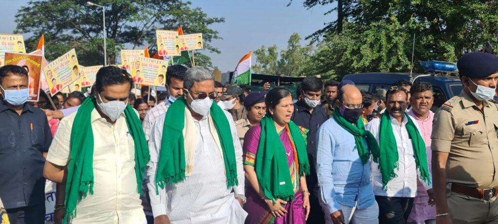 ತಾವು ಪ್ರತಿನಿಧಿಸುವ ಖಾನಾಪುರ ಕ್ಷೇತ್ರದ ಸಮಗ್ರ ಅಭಿವೃದ್ಧಿಗೆ ಆಗ್ರಹಿಸಿ ಕಾಂಗ್ರೆಸ್ ಶಾಸಕಿ ಡಾ.ಅಂಜಲಿ ನಿಂಬಾಳ್ಕರ್ ಅವರು ಹಮ್ಮಿಕೊಂಡಿರುವ ಪಾದಯಾತ್ರೆಯಲ್ಲಿ ವಿಧಾನಸಭೆ ವಿರೋಧ ಪಕ್ಷದ ನಾಯಕ ಸಿದ್ದರಾಮಯ್ಯ ಪಾಲ್ಗೊಂಡಿದ್ದಾರೆ.