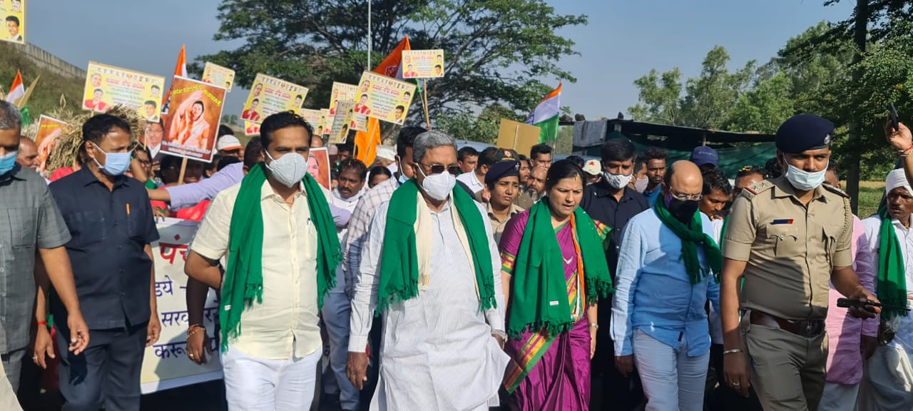 ತಾವು ಪ್ರತಿನಿಧಿಸುವ ಖಾನಾಪುರ ಕ್ಷೇತ್ರದ ಸಮಗ್ರ ಅಭಿವೃದ್ಧಿಗೆ ಆಗ್ರಹಿಸಿ ಕಾಂಗ್ರೆಸ್ ಶಾಸಕಿ ಡಾ.ಅಂಜಲಿ ನಿಂಬಾಳ್ಕರ್ ಅವರು ಹಮ್ಮಿಕೊಂಡಿರುವ ಪಾದಯಾತ್ರೆಯಲ್ಲಿ ವಿಧಾನಸಭೆ ವಿರೋಧ ಪಕ್ಷದ ನಾಯಕ ಸಿದ್ದರಾಮಯ್ಯ ಪಾಲ್ಗೊಂಡಿದ್ದಾರೆ.