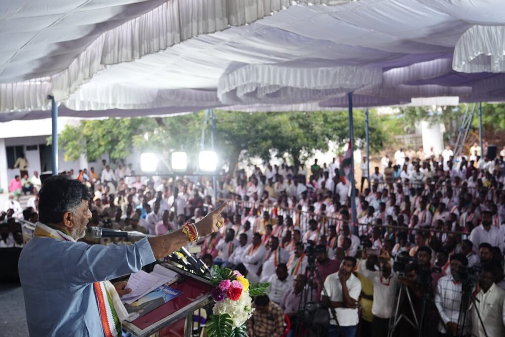 ಪಂಚಮುಖಿಯಲ್ಲಿ ಬ್ಲಾಕ್ ಕಾಂಗ್ರೆಸ್ ಮತ್ತು ಕಾರ್ಯಕರ್ತರ ಸಭೆ ಉದ್ದೇಶಿಸಿ ಕೆಪಿಸಿಸಿ ಅಧ್ಯಕ್ಷರೂ ಆಗಿರುವ ಶಿವಕುಮಾರ್ ಅವರು ಬುಧವಾರ ಮಾತನಾಡಿದರು.