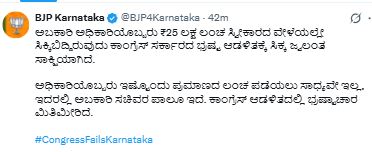 ಬೆಂಗಳೂರು :  ಅಭಿವೃದ್ಧಿ ಶೂನ್ಯ, ಭ್ರಷ್ಟಾಚಾರ ಪೂರ್ಣ - ಇದೇ ಕಾಂಗ್ರೆಸ್ ಸಾಧನೆ! ಮುಖ್ಯಮಂತ್ರಿ ಸಿದ್ದರಾಮಯ್ಯ ನೇತೃತ್ವದ ಕಾಂಗ್ರೆಸ್ ಸರ್ಕಾರ ಭ್ರಷ್ಟಾಚಾರದಲ್ಲಿ ದಿನದಿಂದ ದಿನಕ್ಕೆ ತನ್ನದೇ ದಾಖಲೆ...
