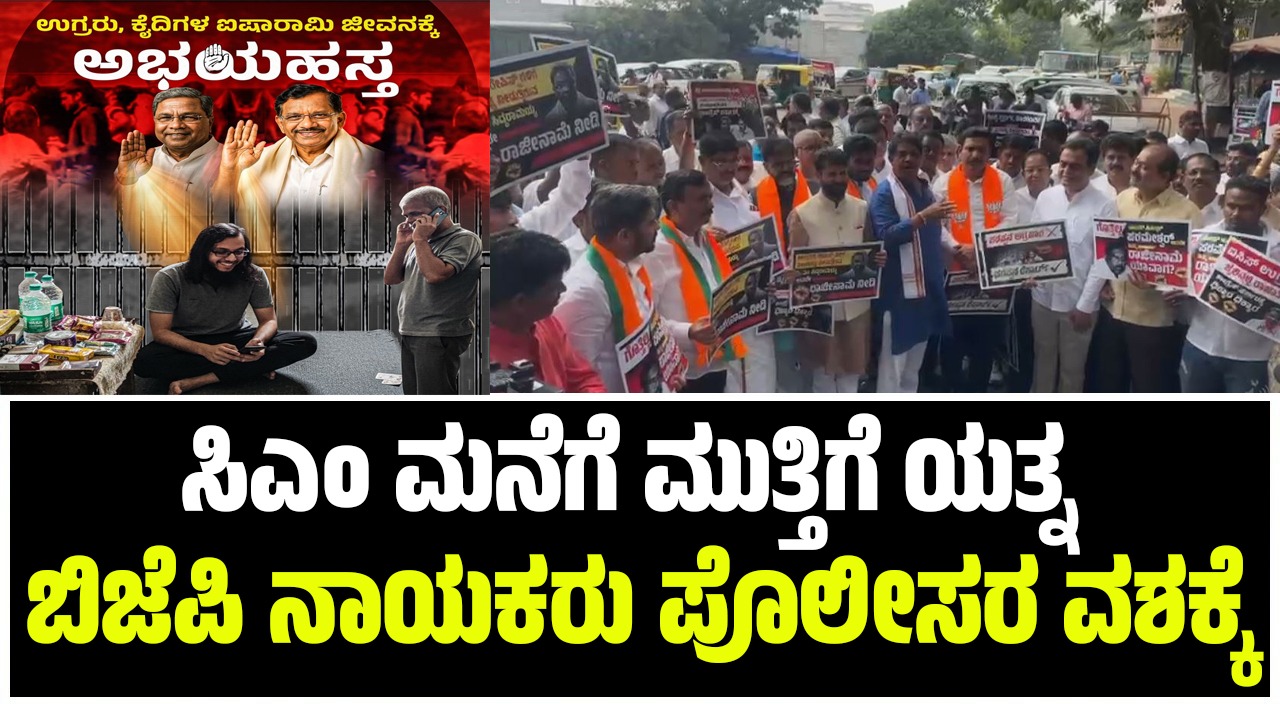 ಕಾಂಗ್ರೆಸ್‌ ಸರ್ಕಾರ ನಿರ್ಲಕ್ಷ್ಯದಿಂದ ರಾಜ್ಯದಲ್ಲಿ ಕಾನೂನು ಸುವ್ಯವಸ್ಥೆ ಸಂಪೂರ್ಣ ಹದಗೆಡುತ್ತಿದೆ ಎಂದು ಆಕ್ರೋಶ ಹೊರಹಾಕಿರುವ ಬಿಜೆಪಿ ಮುಖಂಡರು ಮುಖ್ಯಮಂತ್ರಿ ಸಿದ್ದರಾಮಯ್ಯ ಮನೆಗೆ ಮುತ್ತಿಗೆ ಹಾಕಲು ಪ್ರಯತ್ನಿಸಿದ್ದಾರೆ. ಪ್ರತಿಭಟನೆ ನಡೆಸುತ್ತಾ ಸಿಎಂ ಮನೆಗೆ ಮುತ್ತಿಗೆ ಹಾಕಲು ಹೊರಟ ಬಿಜೆಪಿ ನಾಯಕರನ್ನು ಪೊಲೀಸರು ರೇಸ್ ಕೋರ್ಸ್ ರಸ್ತೆ ಬಳಿಯೇ ತಡೆದು ವಶಕ್ಕೆ ಪಡೆದಿದ್ದಾರೆ.