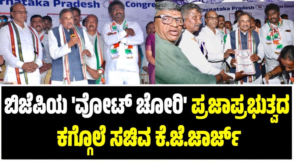 ‘ವೋಟ್ ಚೋರಿ’ ಮೂಲಕ ಕೇಂದ್ರದಲ್ಲಿ ಅಧಿಕಾರ ಹಿಡಿದಿರುವ ಬಿಜೆಪಿಯ ಅಧಿಕಾರ ದುರುಪಯೋಗದ ಬಗ್ಗೆ ಮನೆ ಮನೆಗೆ ತೆರಳಿ ಜನರಿಗೆ ಮನವರಿಕೆ ಮಾಡಿಕೊಡುವುದಾಗಿ ಇಂಧನ ಸಚಿವರೂ ಆಗಿರುವ ಸರ್ವಜ್ಞನಗರ ಕ್ಷೇತ್ರದ ಶಾಸಕ ಕೆ.ಜೆ.ಜಾರ್ಜ್ (MLA Of Sarvagna Nagar KJ George) ಹೇಳಿದ್ದಾರೆ.