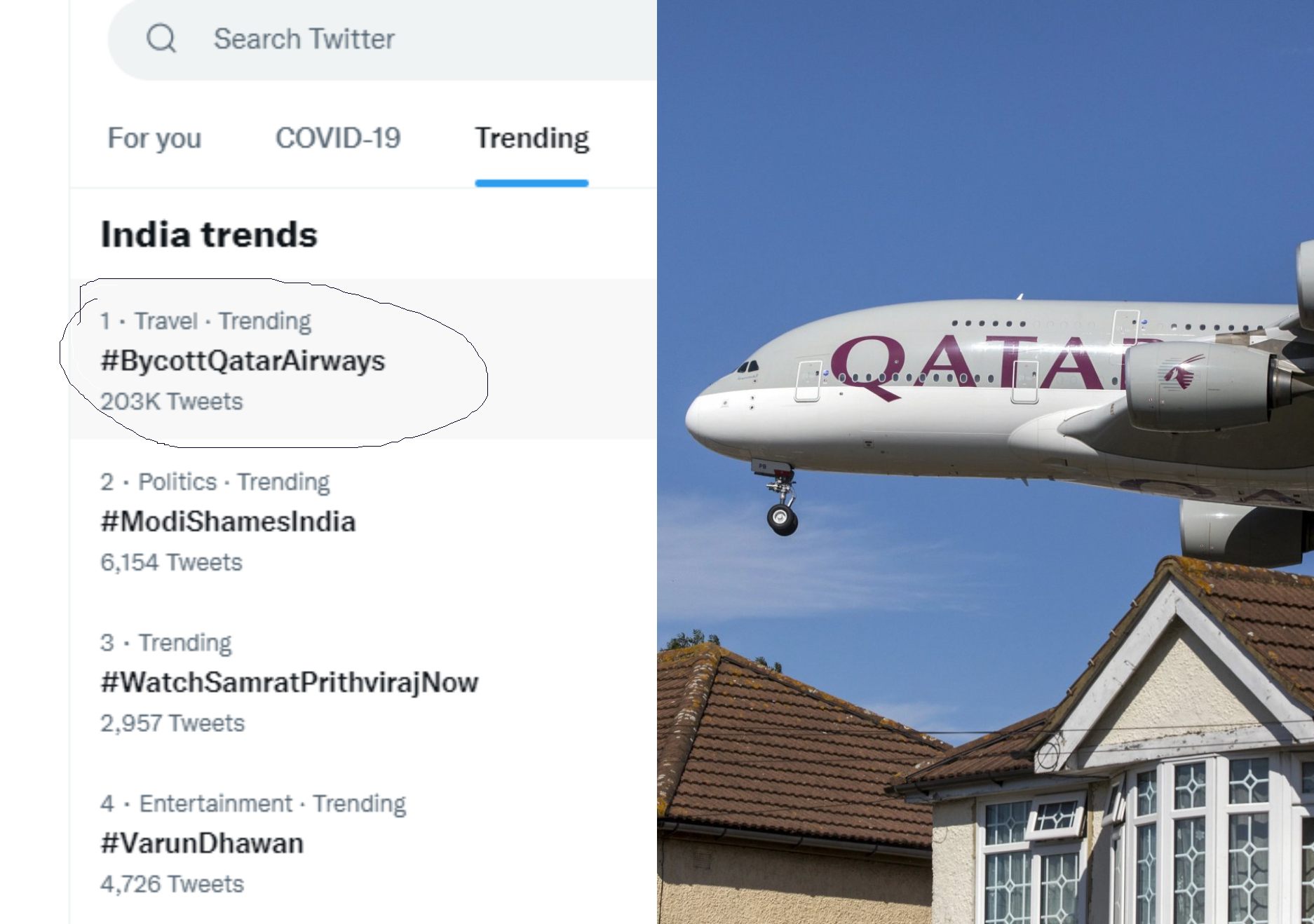 ನೂಪುರ್ ಶರ್ಮಾ ಅವರ ಹೇಳಿಕೆಯನ್ನು ಖಂಡಿಸಿ ಗಲ್ಫ್ ರಾಷ್ಟ್ರಗಳು ಭಾರತೀಯ ಸರಕುಗಳನ್ನು ಬಹಿಷ್ಕರಿಸುವಂತೆ ಕರೆಕೊಟ್ಟಿದ್ದಾರೆ ಎಂದು ಭಾರತದ ಟ್ವೀಟ್ಟಿಗರು, ನೂಪುರ್ ಶರ್ಮಾ ಅವರನ್ನು ಬೆಂಬಲಿಸಿ, ಭಾರತದಲ್ಲಿ ಕಾರ್ಯಚರಿಸುತ್ತಿರುವ ಕತಾರ್ ಏರ್ವೇಸ್ಗೆ ಬಹಿಷ್ಕಾರ ಹಾಕಿ. ನಾವು ಅರಬ್ ದೇಶಗಳ ಯಾವುದೇ ಉತ್ಪನ್ನಗಳನ್ನು ಬಳಸುವುದಿಲ್ಲ ಎಂದು ಪ್ರತಿಜ್ಞೆ ಮಾಡೋಣ ಎಂಬ ಅಭಿಯಾನ ಭಾರತದಲ್ಲಿ ಆರಂಭವಾಗಿದೆ.