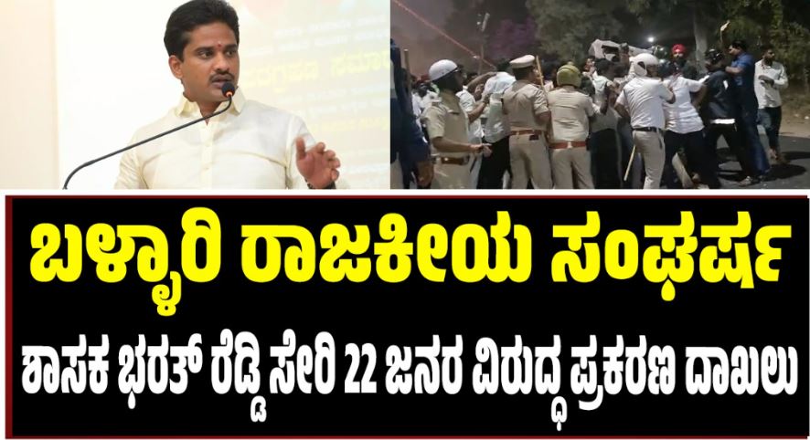 ಬಳ್ಳಾರಿ ರಾಜಕೀಯ ಸಂಘರ್ಷ: ಶಾಸಕ ಭರತ್ ರೆಡ್ಡಿ ಸೇರಿ 22 ಜನರ ವಿರುದ್ಧ ಪ್ರಕರಣ ದಾಖಲು
