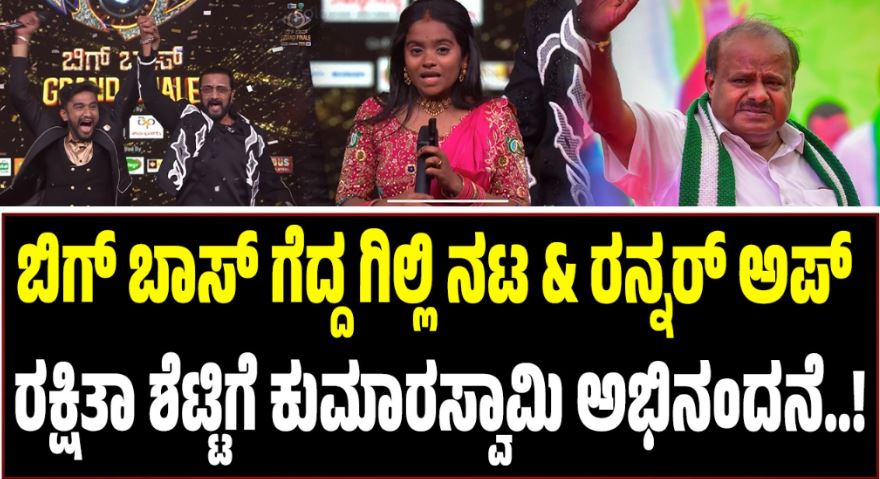 ಮಂಡ್ಯ ಹೈದ ಗಿಲ್ಲಿ ನಟ(Gilli Nata) ಈ ಬಾರಿಯ ವಿನ್ನರ್ ಟ್ರೋಫಿಯನ್ನ ಎತ್ತಿ ಹಿಡಿದರೆ ಮಾತಿನ ಮಲ್ಲಿ ರಕ್ಷಿತಾ ಶೆಟ್ಟಿ(Rakshitha shetty) ರನ್ನರ್ ಅಪ್ ಆಗಿ ಹೊರ ಹೊಮ್ಮಿದ್ದಾರೆ. ವಿನ್ನರ್ ಪಟ್ಟಕ್ಕೇರಿರುವ ಗಿಲ್ಲಿ ನಟಗೆ ಶುಭಾಶಯಗಳ ಮಹಾಪೂರವೇ ಹರಿದು ಬರುತ್ತಿದ್ದು, ಕೇಂದ್ರ ಸಚಿವ ಹೆಚ್.ಡಿ. ಕುಮಾರಸ್ವಾಮಿ(HD Kumaraswamy) ಕೂಡ ಅಭಿನಂದಿಸಿದ್ದಾರೆ.