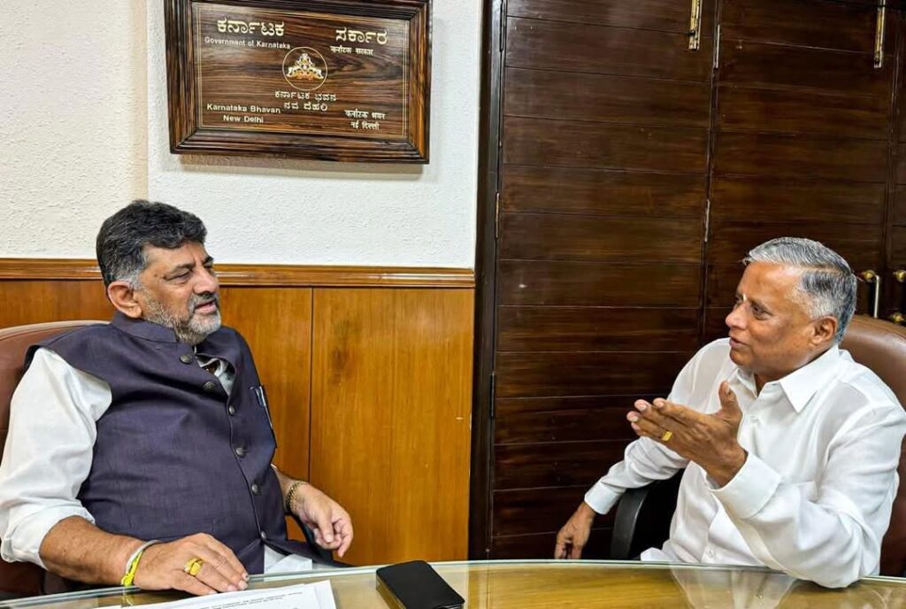 ಕೇಂದ್ರ ಜಲಶಕ್ತಿ ಹಾಗೂ ರೈಲ್ವೆ ಖಾತೆಗಳ ರಾಜ್ಯ ಸಚಿವ ವಿ. ಸೋಮಣ್ಣ ಅವರ ಭೇಟಿ ಬಳಿಕ ದೆಹಲಿಯಲ್ಲಿ ಸುದ್ದಿಗಾರರ ಪ್ರಶ್ನೆಗೆ ಶಿವಕುಮಾರ್ ಅವರು ಮಂಗಳವಾರ ಉತ್ತರಿಸಿದರು.
