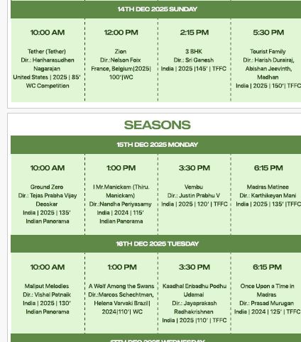 ಇಂದಿನಿಂದ ಚೆನ್ನೈ ಇಂಟರ್‌ನ್ಯಾಷನಲ್‌ ಫಿಲ್ಮಂ ಫೆಸ್ಟಿವಲ್‌: ಇಲ್ಲಿದೆ ಸಂಪೂರ್ಣ ಮಾಹಿತಿ