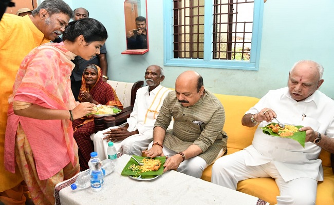 ಮುಖ್ಯಮಂತ್ರಿ ಬಸವರಾಜ ಬೊಮ್ಮಾಯಿ, ಮಾಜಿ ಮುಖ್ಯಮಂತ್ರಿ ಬಿ.ಎಸ್. ಯಡಿಯೂರಪ್ಪ, ಸಚಿವರಾದ ಗೋವಿಂದ ಕಾರಜೋಳ, ಆನಂದ್ ಸಿಂಗ್ ಅವರೊಂದಿಗೆ ಆಗಮಿಸಿದ ಮುಖ್ಯಮಂತ್ರಿಗಳು ಕಮಲಾಪುರ ಅಂಬೇಡ್ಕರ್ ನಗರದ ದಲಿತ ಹಿರಾಳ ಕೊಲ್ಲಾರಪ್ಪ ಅವರ ಮನೆಯಲ್ಲಿ ಬೆಳಗಿನ ಉಪಾಹಾರ ಸವಿದರು.