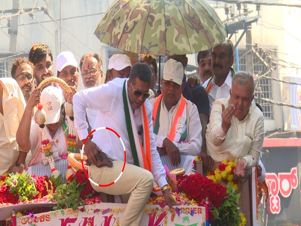 ಸಿಎಂ ಸಿದ್ದರಾಮಯ್ಯ ಚುನಾವಣಾ ಪ್ರಚಾರದ ವೇಳೆ ಗನ್ ಜೊತೆಗೆ ಬಂದು ಸಿಎಂಗೆ ಹಾರ ಹಾಕಿರುವ ಘಟನೆ ನಡೆದಿದೆ. ಬೆಂಗಳೂರು ದಕ್ಷಿಣ ಕ್ಷೇತ್ರದ ಪ್ರಚಾರದ ವೇಳೆ ಭೈರಸಂದ್ರದ ಪ್ರಚಾರದ ವೇಳೆ ಘಟನೆ ನಡೆದಿದೆ. ಸೊಂಟದಲ್ಲಿ ಗನ್ ಇಟ್ಟುಕೊಂಡು ಬಂದವನು ಕ್ಯಾಂಟರ್ ಮೇಲೇರಿ ಸಿಎಂ ಸಿದ್ದರಾಮಯ್ಯಗೆ ಹಾರ ಹಾಕಿದ್ದಾನೆ. ಆತನ ಬಳಿ ಗನ್ ಇದ್ದರೂ ಪೊಲೀಸರು ಗಮನಿಸಿಲ್ಲ ಅನ್ನೋದು ವಿಶೇಷ.