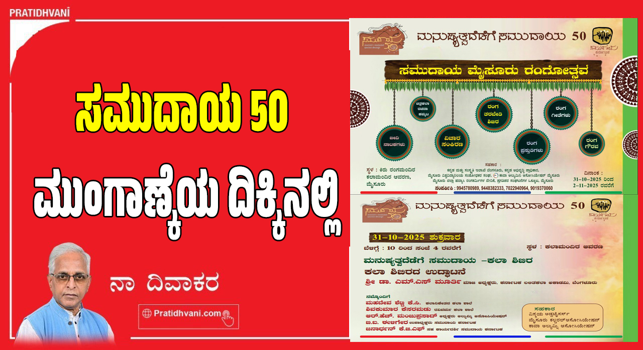 ಬದಲಾದ ಭಾರತದಲ್ಲಿ, ವಿಕಸಿತವಾಗುವ ಕಡೆ ಸಾಗುತ್ತಿರುವ ಭಾರತದಲ್ಲಿ ಪ್ರಜಾಪ್ರಭುತ್ವ ಮತ್ತು ಸಂವಿಧಾನಗಳ ಚೌಕಟ್ಟಿನೊಳಗೆ ಮಾನವೀಯ ಸಮಾಜವೊಂದನ್ನು ಮರುಕಟ್ಟು ಅಗತ್ಯತೆ ಇಡೀ ಸಮಾಜದ ಮುಂದಿದೆ. ʼ ಸಮುದಾಯ ʼ ಈ ನೊಗದ ಭಾರವನ್ನು ಹೊತ್ತು ಮುನ್ನಡೆಯಬೇಕಿದೆ. ಪ್ರತಿಯೊಂದು ಹೆಜ್ಜೆಯಲ್ಲೂ ಎಲ್ಲರನ್ನೂ, ಎಲ್ಲ ವರ್ಗಗಳನ್ನೂ ಒಳಗೊಳ್ಳುತ್ತಾ ಉಜ್ವಲ ಭವಿಷ್ಯದೆಡೆಗೆ ಸಾಗುವ ದೊಡ್ಡ ಜವಾಬ್ದಾರಿ ಮತ್ತು ಸವಾಲು ʼಸಮುದಾಯʼ ದ ಮುಂದಿದೆ. ಚರಿತ್ರೆಯನ್ನು ಅರಿಯುತ್ತಾ, ವರ್ತಮಾನವನ್ನು ಅವಲೋಕನ ಮಾಡುತ್ತಾ, ಭವಿಷ್ಯವನ್ನು ರೂಪಿಸುತ್ತಾ ನಡೆಯುವ ಉದಾತ್ತ ಆಲೋಚನೆಯೊಂದಿಗೆ ʼ ಸಮುದಾಯ 50ʼ ಮನುಷ್ಯತ್ವದೆಡೆಗೆ ಸಮಾಜವನ್ನು ಕೊಂಡೊಯ್ಯುವ ರಥವಾಗಿ ನಮ್ಮ ನಡುವೆ ಮೂರು ದಿನಗಳ ಕಾಲ ಚಲಿಸಲಿದೆ.