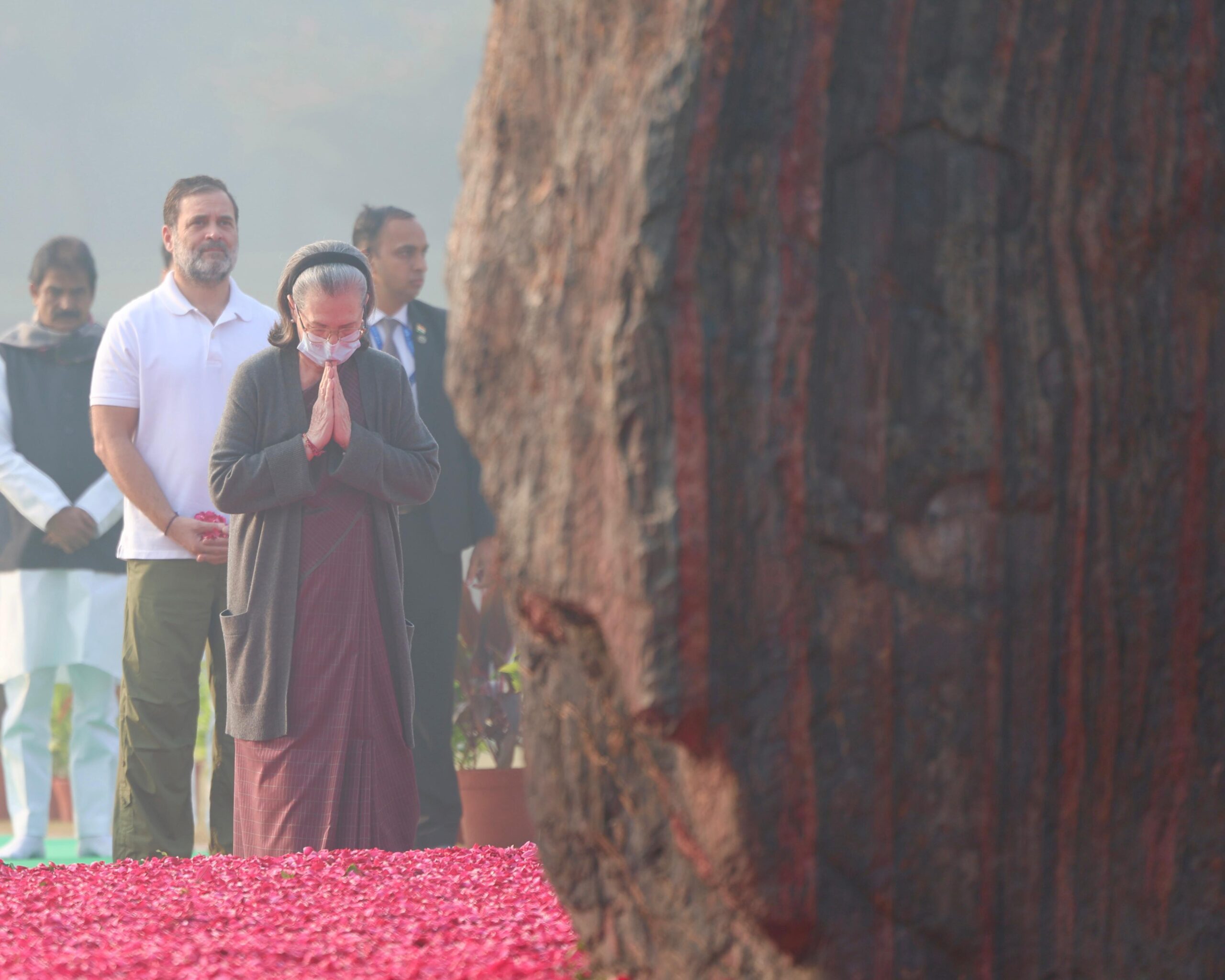 ಕಾಂಗ್ರೆಸ್ ಹಿರಿಯ ನಾಯಕಿ ಸೋನಿಯಾ ಗಾಂಧಿ ಕಾಂಗ್ರೆಸ್ ನಾಯಕ ರಾಹುಲ್ ಗಾಂಧಿ ಹಾಗೂ ಎಐಸಿಸಿ ಅಧ್ಯಕ್ಷ ಮಲ್ಲಿಕಾರ್ಜುನ್ ಖರ್ಗೆ ಇಂದಿರಾ ಗಾಂಧಿ ಸ್ಮಾರಕಕ್ಕೆ ತೆರಳಿ ಗೌರವ ನಮನ ಸಲ್ಲಿಸಿದರು.