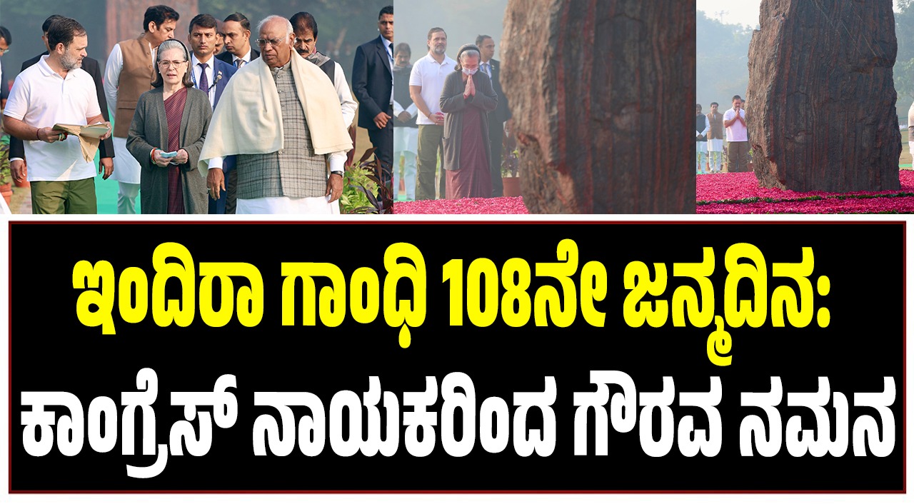 ಕಾಂಗ್ರೆಸ್ ಹಿರಿಯ ನಾಯಕಿ ಸೋನಿಯಾ ಗಾಂಧಿ ಕಾಂಗ್ರೆಸ್ ನಾಯಕ ರಾಹುಲ್ ಗಾಂಧಿ ಹಾಗೂ ಎಐಸಿಸಿ ಅಧ್ಯಕ್ಷ ಮಲ್ಲಿಕಾರ್ಜುನ್ ಖರ್ಗೆ ಇಂದಿರಾ ಗಾಂಧಿ ಸ್ಮಾರಕಕ್ಕೆ ತೆರಳಿ ಗೌರವ ನಮನ ಸಲ್ಲಿಸಿದರು.