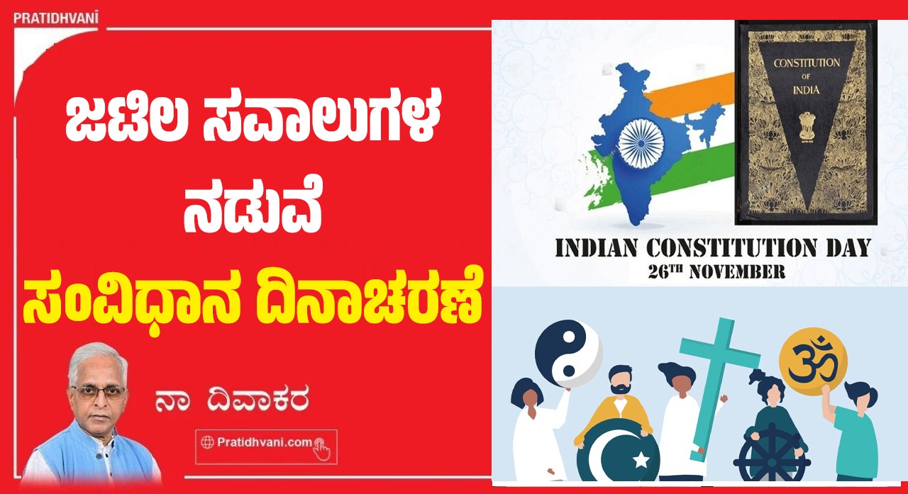 ಈ ನೆನಪಿನಲ್ಲಿ ಇಂದು ನಾವು ʼ ಸಂವಿಧಾನ ದಿನ ʼ ಆಚರಿಸುತ್ತಿದ್ದೇವೆ. ಭಾರತದ ರಾಜಕೀಯ ಭೂ ದೃಶ್ಯವನ್ನು (Political Landscape) ಹೊಸದಿಕ್ಕಿನಲ್ಲಿ ಕರೆದೊಯ್ಯುವ, ಸಾಂಸ್ಕೃತಿಕ ಮೂಲ ನೆಲೆಗಳನ್ನು (Cultural Foundations) ಹಿಂದಕ್ಕೆ ಎಳೆದೊಯ್ಯುವ, ಆರ್ಥಿಕ ಸಂರಚನೆಯನ್ನು (Economic Structure) ಪಲ್ಲಟಗೊಳಿಸುವ ಆಡಳಿತಾತ್ಮಕ ಪ್ರಯತ್ನಗಳ ನಡುವೆಯೇ, ಈ ಪರಿವರ್ತನೆಯ ಪ್ರತಿಪಾದಕರೂ ಸಹ ಇಂದು ಸಂವಿಧಾನವನ್ನು ಆರಾಧಿಸಿ, ಆಚರಿಸುತ್ತಾರೆ. ನಡೆ-ನುಡಿಯ ನಡುವಿನ ಈ ದ್ವಂದ್ವವನ್ನು ಬದಿಗಿಟ್ಟು, ನೆಲದ ವಾಸ್ತವಗಳತ್ತ (Ground realities) ಗಮನಹರಿಸಿದಾಗ, ಸಂವಿಧಾನ ಎನ್ನುವುದು ಇಂದು ಗ್ರಾಂಥಿಕವಾಗಿ ವೈಭವೀಕರಣಕ್ಕೊಳಗಾಗಿದೆ. ಆದರೆ ತಳಮಟ್ಟದ ಸಾಮಾಜಿಕ ವಾತಾವರಣದಲ್ಲಿ ಈ ಗ್ರಂಥದಲ್ಲಿ ಪ್ರತಿಪಾದಿಸಲಾಗಿರುವ ಆಡಳಿತಾತ್ಮಕ ಹಾಗೂ ಶಾಸನಾತ್ಮಕ ಮೌಲ್ಯಗಳು ಅವಗಣನೆಗೆ ಒಳಗಾಗುತ್ತಿವೆ.