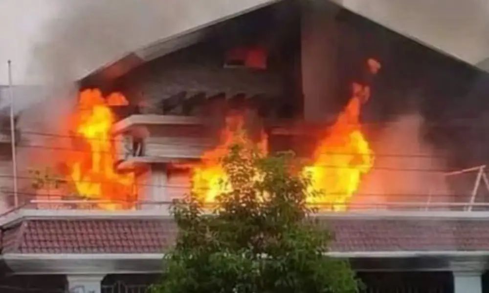 Bangladesh former national captain and currently AL mp Mashrafe Mortaza's house being burned down.. pic.twitter.com/hteebrdXcJ
