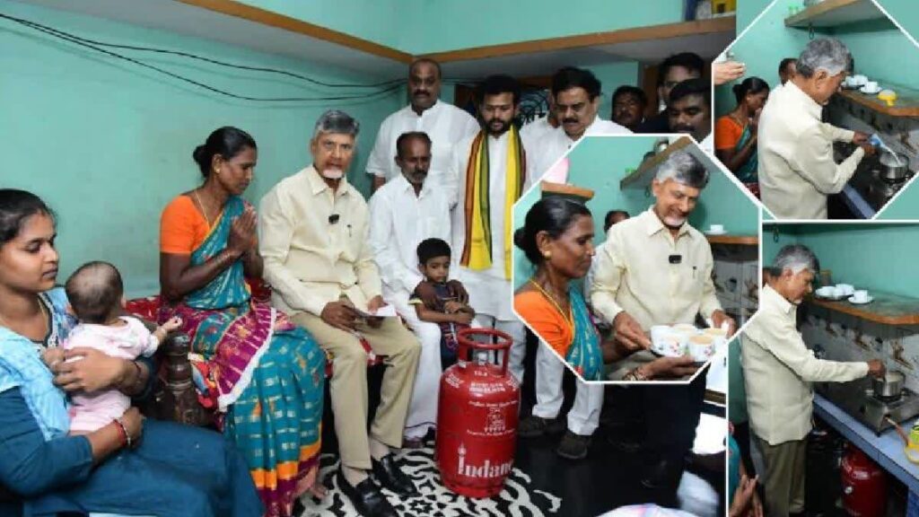 ಅಮರಾವತಿ:ಆಂಧ್ರಪ್ರದೇಶದ ಮುಖ್ಯಮಂತ್ರಿ ಚಂದ್ರಬಾಬು ನಾಯ್ಡು ಅವರು ಶುಕ್ರವಾರ ಶ್ರೀಕಾಕುಳಂ ಜಿಲ್ಲೆಯ ಇಚ್ಚಾಪುರಂ ಮಂಡಲದ ಈದುಪುರಂ ಗ್ರಾಮದಲ್ಲಿ ಉಚಿತ ಗ್ಯಾಸ್ ಸಿಲಿಂಡರ್ ವಿತರಣಾ ಯೋಜನೆಯಾದ ‘ದೀಪಂ 2.0’ ಗೆ ಚಾಲನೆ ನೀಡಿದರು. ಚಂದ್ರಬಾಬು ಅವರು ಮಹಿಳಾ ಫಲಾನುಭವಿಯೊಬ್ಬರ ಮನೆಗೆ ತೆರಳಿ ಉಚಿತ ಗ್ಯಾಸ್ ಸಿಲಿಂಡರ್ ನೀಡುವ ಮೂಲಕ ಯೋಜನೆಗೆ ಚಾಲನೆ ನೀಡಿದರು. ಈ ಸಂದರ್ಭದಲ್ಲಿ ಸಿಎಂ ಸ್ವತಃ ಗ್ಯಾಸ್ ಸ್ಟವ್ ಹೊತ್ತಿಸಿ ಚಹಾ ತಯಾರಿಸಿದರು.