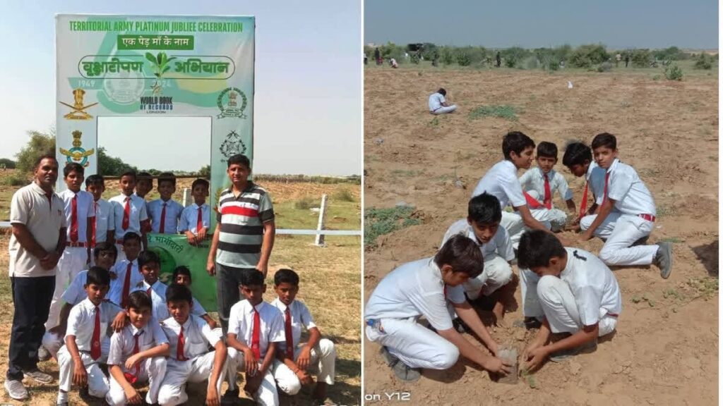 ಜೈಸಲ್ಮೇರ್ (ರಾಜಸ್ಥಾನ): ಭಾರತ-ಪಾಕ್ ಗಡಿಗೆ ಸಮೀಪದಲ್ಲಿರುವ ಮತ್ತು ಮರಳು ದಿಬ್ಬಗಳಿಗೆ ಹೆಸರುವಾಸಿಯಾಗಿರುವ ಜೈಸಲ್ಮೇರ್ ಜಿಲ್ಲೆ ಈಗ ಹಸಿರು ಕ್ರಾಂತಿಯನ್ನು ಕಾಣುತ್ತಿದೆ. ಪ್ರಾದೇಶಿಕ ಸೇನೆಯು ಈ ಪ್ರದೇಶದಲ್ಲಿ ಸಾಮೂಹಿಕ ನೆಡುತೋಪು ಅಭಿಯಾನವನ್ನು ಪ್ರಾರಂಭಿಸುವ ಮೂಲಕ ಒಂದು ರೀತಿಯ ಇತಿಹಾಸವನ್ನು ಸೃಷ್ಟಿಸಿದೆ. ಟೆರಿಟೋರಿಯಲ್ ಆರ್ಮಿಯ 128ನೇ ಪದಾತಿದಳ ಬೆಟಾಲಿಯನ್ (128th Infantry Battalion of the Territorial Army)(ಇಕೋ ಟಾಸ್ಕ್ ಫೋರ್ಸ್) ಭಾನುವಾರ ಜೈಸಲ್ಮೇರ್ನಲ್ಲಿ (Jaisalmer)ಒಂದು ಗಂಟೆಯಲ್ಲಿ ಐದು ಲಕ್ಷಕ್ಕೂ ಹೆಚ್ಚು ( five lakhs Seedlings in an hour)ಸಸಿಗಳನ್ನು ನೆಡುವ ಮೂಲಕ ವಿಶ್ವದಾಖಲೆ ನಿರ್ಮಿಸಿದೆ.