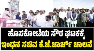 ಪಿಎಂ ಕುಸುಮ್- ಸಿ ಯೋಜನೆಯಡಿ ಹೊಸಕೋಟೆಯ ಯಲಚಹಳ್ಳಿ ಕೆರೆ ಅಂಗಳದಲ್ಲಿ ಸ್ಥಾಪಿಸಿರುವ ಸೌರ ಘಟಕಕ್ಕೆ ಇಂಧನ ಸಚಿವ ಕೆ.ಜೆ.ಜಾರ್ಜ್ ಗುರುವಾರ ಚಾಲನೆ ನೀಡಿದರು.