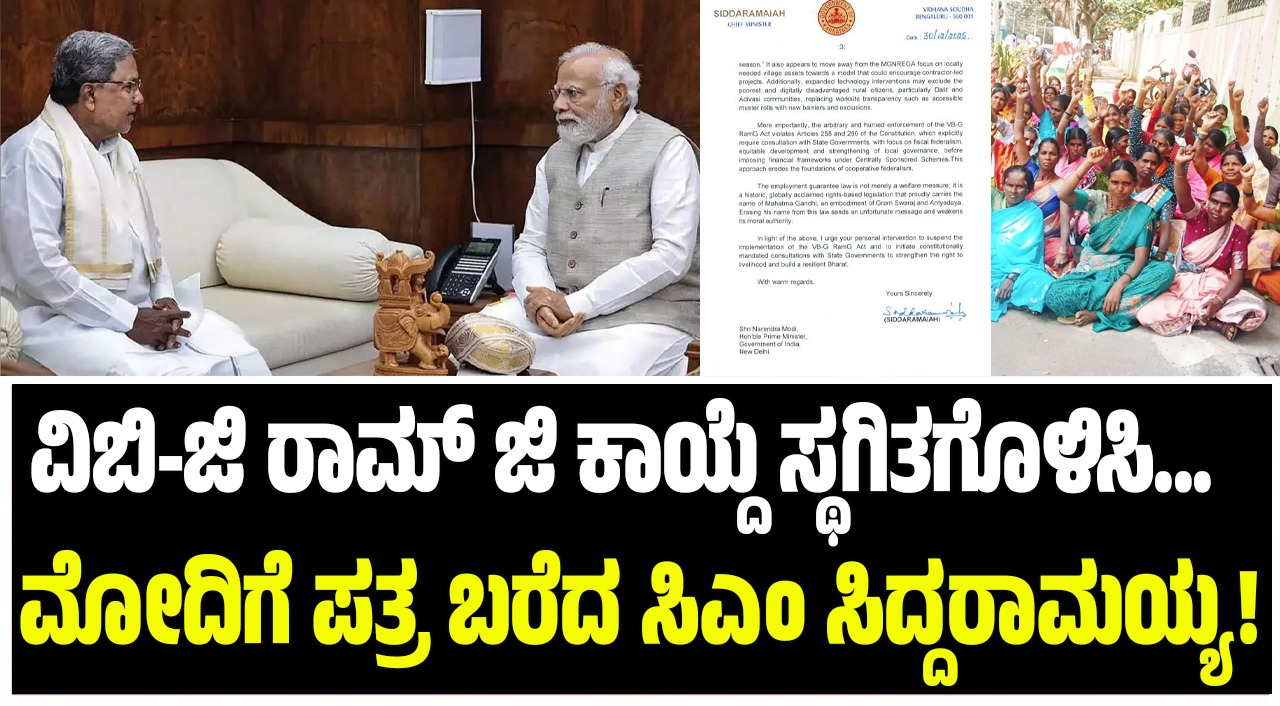ಮುಖ್ಯಮಂತ್ರಿ ಸಿದ್ದರಾಮಯ್ಯ ಅವರು ವಿಬಿ-ಜಿ ರಾಮ್ ಜಿ ಕಾಯ್ದೆ ಅನುಷ್ಠಾನ ತಡೆ ಹಿಡಿಯುವ ಕುರಿತಾಗಿ ಪ್ರಧಾನಿ ನರೇಂದ್ರ ಮೋದಿ ಅವರಿಗೆ ಬರೆದ ಪತ್ರದ ಅಂಶಗಳು: