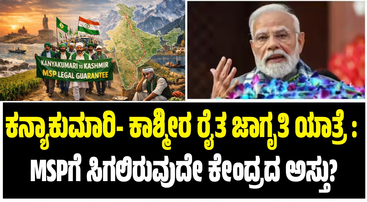ಬೆಂಗಳೂರು : ಭಾರತದ ಕೃಷಿ ವ್ಯವಸ್ಥೆಯಲ್ಲಿ “ಎಂಎಸ್ಪಿ” ಎಂಬ ಪದವು ವರ್ಷಗಳಿಂದ ಭರವಸೆಯ ಸಂಕೇತವಾಗಿ ಬಳಸಲ್ಪಡುತ್ತಿದೆ. ಆದರೆ ವಾಸ್ತವದಲ್ಲಿ, ಅದು ರೈತರ ಬದುಕಿಗೆ ಭದ್ರತೆ ನೀಡುವ ಕಾನೂನು ಹಕ್ಕಾಗಿಲ್ಲ. ಇದೇ ಕಾರಣಕ್ಕೆ ಇಂದು ಎಂಎಸ್ಪಿ (ಕನಿಷ್ಠ ಬೆಂಬಲ ಬೆಲೆ) ಖಾತರಿ ಕಾನೂನು ರೈತರ ಹೋರಾಟದ ಕೇಂದ್ರಬಿಂದುವಾಗಿದೆ. ತಮ್ಮ ಬೆಳೆಗಳಿಗೆ ಕನಿಷ್ಠ ಬೆಂಬಲ ಖಾತರಿ ಮಾಡುವ ಕಾನೂನನ್ನು ರೂಪಿಸಿಯೇ ತೀರಬೇಕೆಂದು ದೇಶದ ರೈತರು ಕನ್ಯಾಕುಮಾರಿಯಿಂದ ಕಾಶ್ಮೀರದವರೆಗೆ ರೈತ ಜಾಗೃತಿ ಯಾತ್ರೆ ಆಯೋಜಿಸಿದ್ದಾರೆ.