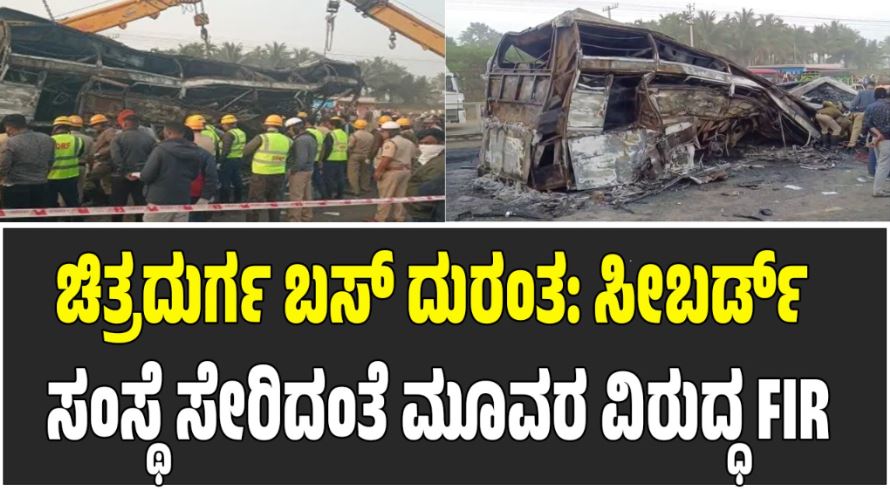 ನಿನ್ನೆ ಡಿಸೆಂಬರ್ 25 ಗುರುವಾರ ನಸುಕಿನ ಜಾವ 2 ಗಂಟೆ ಸುಮಾರಿಗೆ ಚಿತ್ರದುರ್ಗ ಜಿಲ್ಲೆಯ ಹಿರಿಯೂರು(Hiriyuru) ತಾಲೂಕಿನ ಗೊರ್ಲತ್ತು ಕ್ರಾಸ್ ಬಳಿ ಖಾಸಗಿ ಬಸ್ ಭೀಕರ ಅಪಘಾತ ಸಂಭವಿಸಿತ್ತು. ಬೆಂಗಳೂರಿನಿಂದ ಗೋಕರ್ಣಕ್ಕೆ ತೆರಳುತ್ತಿದ್ದ ಖಾಸಗಿ ಬಸ್ ಸೀಬರ್ಡ್ ಸ್ಲೀಪರ್ ಕೋಚ್ ಬಸ್ಗೆ, ಎದುರಿನಿಂದ ಬರುತ್ತಿದ್ದ ಲಾರಿ ಡಿವೈಡರ್ ಹಾರಿ ಬಂದು ಡಿಕ್ಕಿ ಹೊಡೆದ ಪರಿಣಾಮ ಈ ದುರಂತ ಸಂಭವಿಸಿತ್ತು. ಲಾರಿ ಡಿಕ್ಕಿ ಹೊಡೆದ ತಕ್ಷಣ ಬಸ್ಗೆ ಬೆಂಕಿ ಹೊತ್ತಿಕೊಂಡಿದ್ದು, ಬಸ್ ಸಂಪೂರ್ಣವಾಗಿ ಸುಟ್ಟು ಕರಕಲಾಗಿದ್ದು, ಅಪಾರ ಸಾವು ನೋವು ಸಂಭವಿಸಿದೆ.