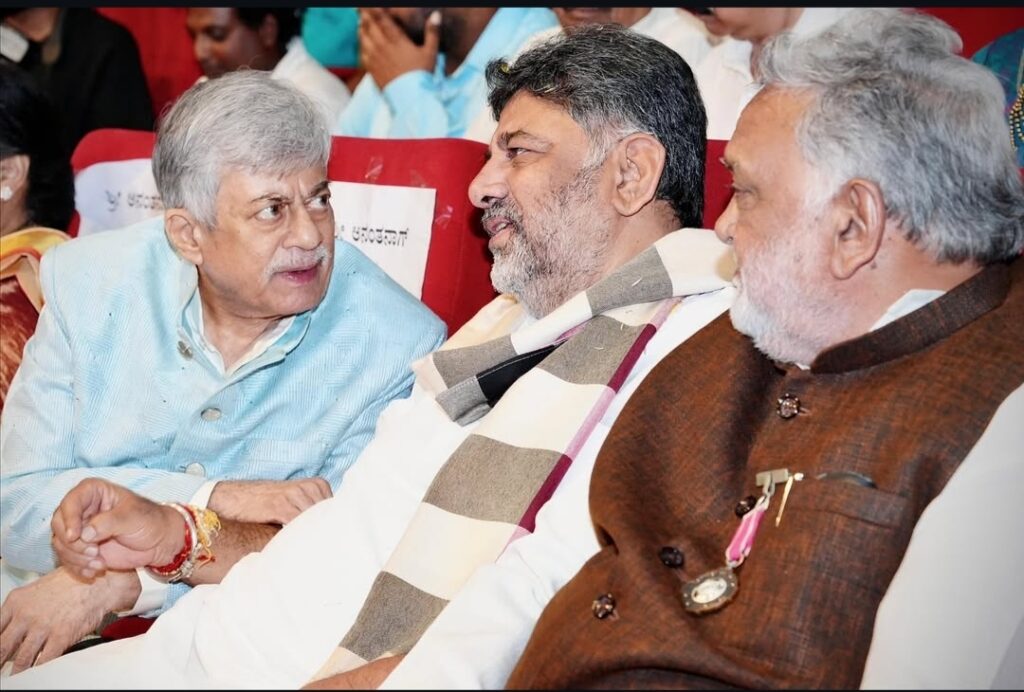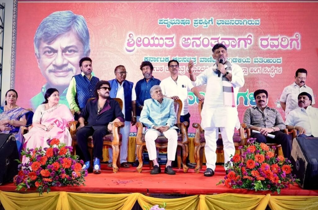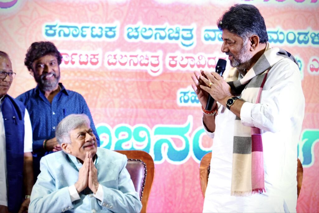 ಬೆಂಗಳೂರಿನ ಕರ್ನಾಟಕ ಚಲನಚಿತ್ರ ಕಲಾವಿದರ ಸಂಘದ ಸಭಾಂಗಣದಲ್ಲಿ ಶನಿವಾರ ರಾತ್ರಿ ಏರ್ಪಡಿಸಿದ್ದ ಪ್ರಸಕ್ತ ಸಾಲಿನ ಪದ್ಮಭೂಷಣ ಪ್ರಶಸ್ತಿ ಪುರಸ್ಕೃತ ಖ್ಯಾತ ನಟ ಅನಂತನಾಗ್ (Ananthnag) ಹಾಗೂ ಪದ್ಮಶ್ರೀ ಪ್ರಶಸ್ತಿಗೆ ಭಾಜನರಾಗಿರುವ ಖ್ಯಾತ ಸಿನಿಮಾ ಸಾಹಸ ನಿರ್ದೇಶಕ ಹಾಸನ್ ರಘು (Hassan Raghu)ಅವರ ಸನ್ಮಾನ ಸಮಾರಂಭದಲ್ಲಿ ಡಿಸಿಎಂ ಡಿ.ಕೆ. ಶಿವಕುಮಾರ್ (DCM DK SHIVAKUMAR)ಅವರು ಮಾತನಾಡಿದರು.