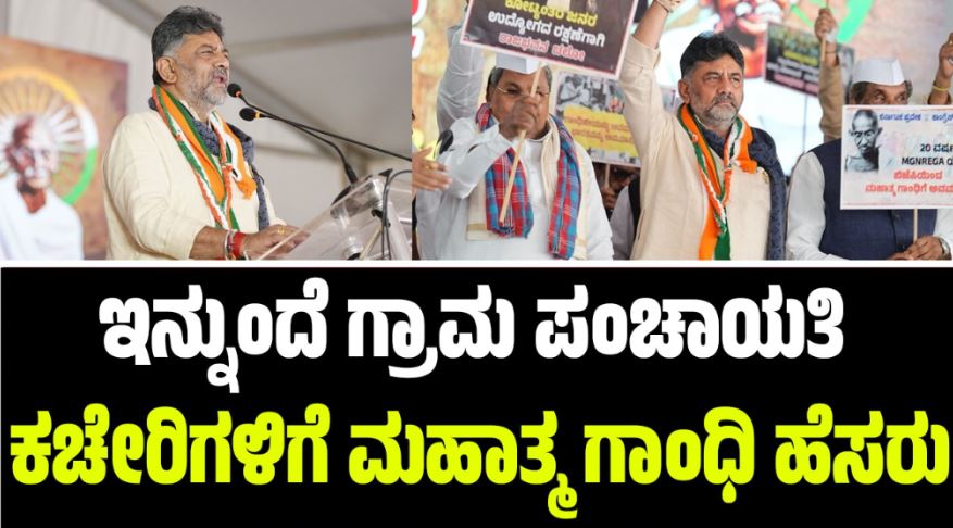 ಬೆಂಗಳೂರು: ರಾಜ್ಯದಲ್ಲಿರುವ ಸುಮಾರು 6 ಸಾವಿರ ಪಂಚಾಯತಿ ಕಚೇರಿಗಳಿಗೆ ಮಹಾತ್ಮ ಗಾಂಧಿ ಅವರ ಹೆಸರಿಡಲಾಗುವುದು. ಇದು ಕಾಂಗ್ರೆಸ್(Congress) ಪಕ್ಷದ ತೀರ್ಮಾನ ಎಂದು ಡಿಸಿಎಂ ಡಿ.ಕೆ. ಶಿವಕುಮಾರ್(DCM D.K Shivakumar) ಘೋಷಿಸಿದ್ದಾರೆ.
