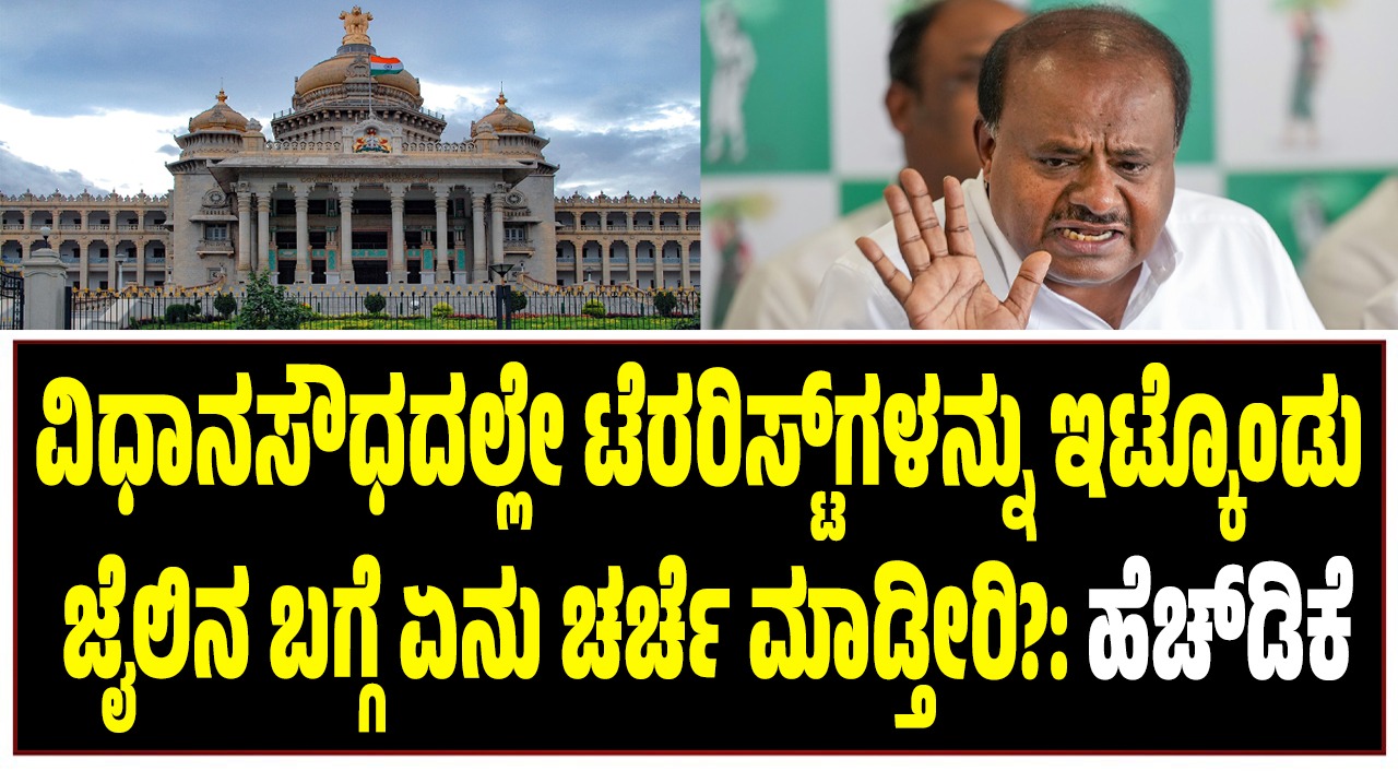 ನಗರದಲ್ಲಿ ಸುದ್ದಿಗಾರರೊಂದಿಗೆ ಮಾತನಾಡಿದ ಅವರು, ವಿಧಾನಸೌಧದಲ್ಲೇ ಭಯೋತ್ಪಾದಕರನ್ನು ಇಟ್ಟುಕೊಂಡು, ಪರಪ್ಪನ ಅಗ್ರಹಾರ ಜೈಲಿನಲ್ಲಿರುವ ಭಯೋತ್ಪಾದಕರ ಬಗ್ಗೆ ಮಾತನಾಡಿ ಏನು ಪ್ರಯೋಜನ? ವಿಧಾನ ಸೌಧದಲ್ಲಿ ಇರುವಂತಹ ಟೆರರಿಸ್ಟ್ ಬಗ್ಗೆ ಯಾರೂ ಚರ್ಚೆ ಮಾಡುತ್ತಿಲ್ಲವಲ್ಲ. ಹಾಗಿದ್ದ ಮೇಲೆ ಪರಪ್ಪನ ಅಗ್ರಹಾರದ ಬಗ್ಗೆ ಏನು ಚರ್ಚೆ ಮಾಡುತ್ತೀರಿ? ಎಂದು ಕುಮಾರಸ್ವಾಮಿ ಕಾಂಗ್ರೆಸ್ ಸರ್ಕಾರದ ವಿರುದ್ಧ ಕಿಡಿಕಾರಿದ್ದಾರೆ.