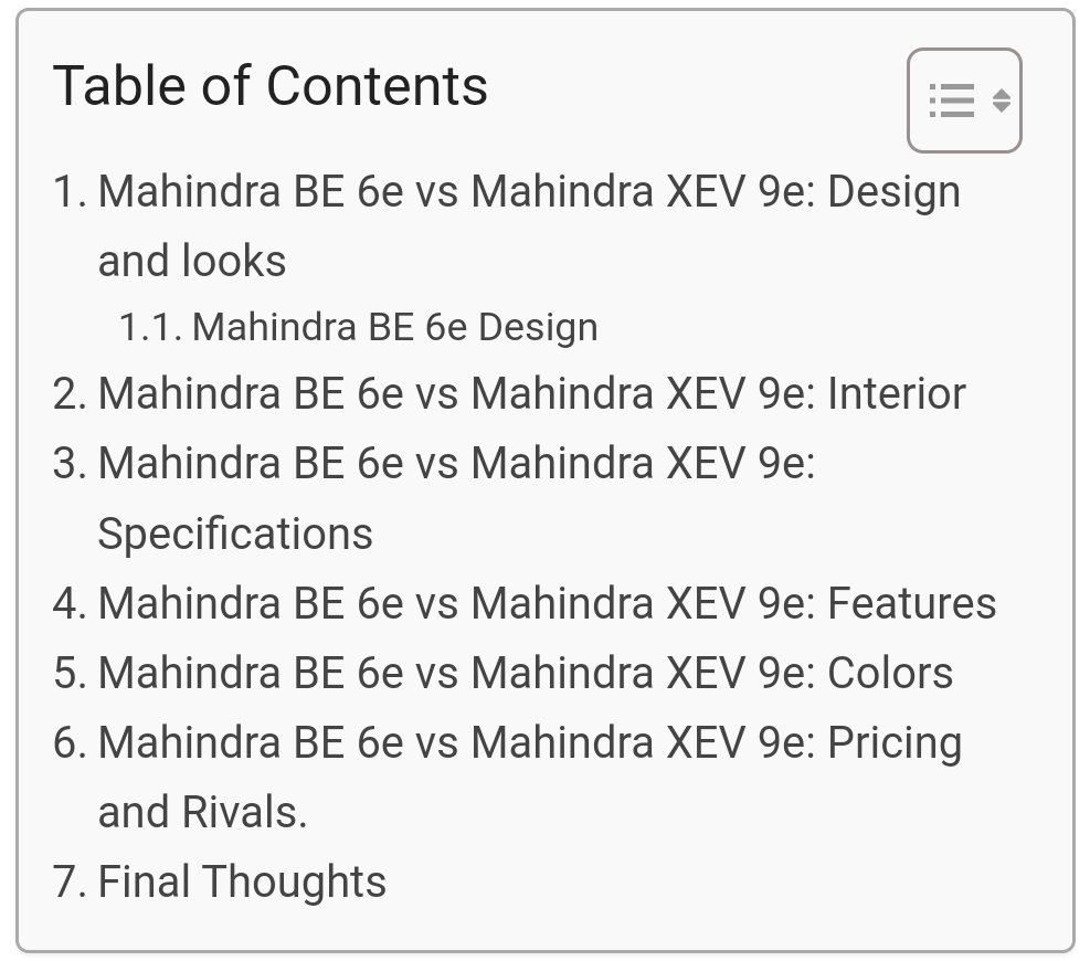 ಅಂತಿಮ ಆಲೋಚನೆಗಳು :ಕೊನೆಯಲ್ಲಿ, ಮಹೀಂದ್ರಾ BE 6e ಮತ್ತು XEV 9e ಬ್ಯಾಟರಿ ಆಯ್ಕೆಗಳು, ಕಾರ್ಯಕ್ಷಮತೆಯ ಸಾಮರ್ಥ್ಯಗಳು ಮತ್ತು ಹೈಟೆಕ್ ವೈಶಿಷ್ಟ್ಯಗಳಂತಹ ಹಲವಾರು ಪ್ರಮುಖ ವೈಶಿಷ್ಟ್ಯಗಳನ್ನು ಹಂಚಿಕೊಂಡರೆ, ಅವು ವಿನ್ಯಾಸ, ಬೆಲೆ ಮತ್ತು ಒಟ್ಟಾರೆ ಆಕರ್ಷಣೆಯಲ್ಲಿ ಭಿನ್ನವಾಗಿವೆ.