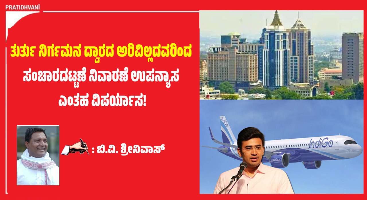 * ವಿಮಾನದಲ್ಲಿನ ತುರ್ತು ನಿರ್ಗಮನ ದ್ವಾರ ಯಾವಾಗ ತೆರೆಯಬೇಕು ಎಂಬುದರ ಅರಿವಿಲ್ಲದ ಸಂಸದ ತೇಜಸ್ವಿ ಸೂರ್ಯ ಈಗ ‘ಬೆಂಗಳೂರು ಸಂಚಾರದಟ್ಟಣೆ ನಿವಾರಣೆ’ ಕುರಿತು ಉಪನ್ಯಾಸ ನೀಡುತ್ತಿದ್ದಾನೆ. ಎಂತಹ ವಿಪರ್ಯಾಸ!