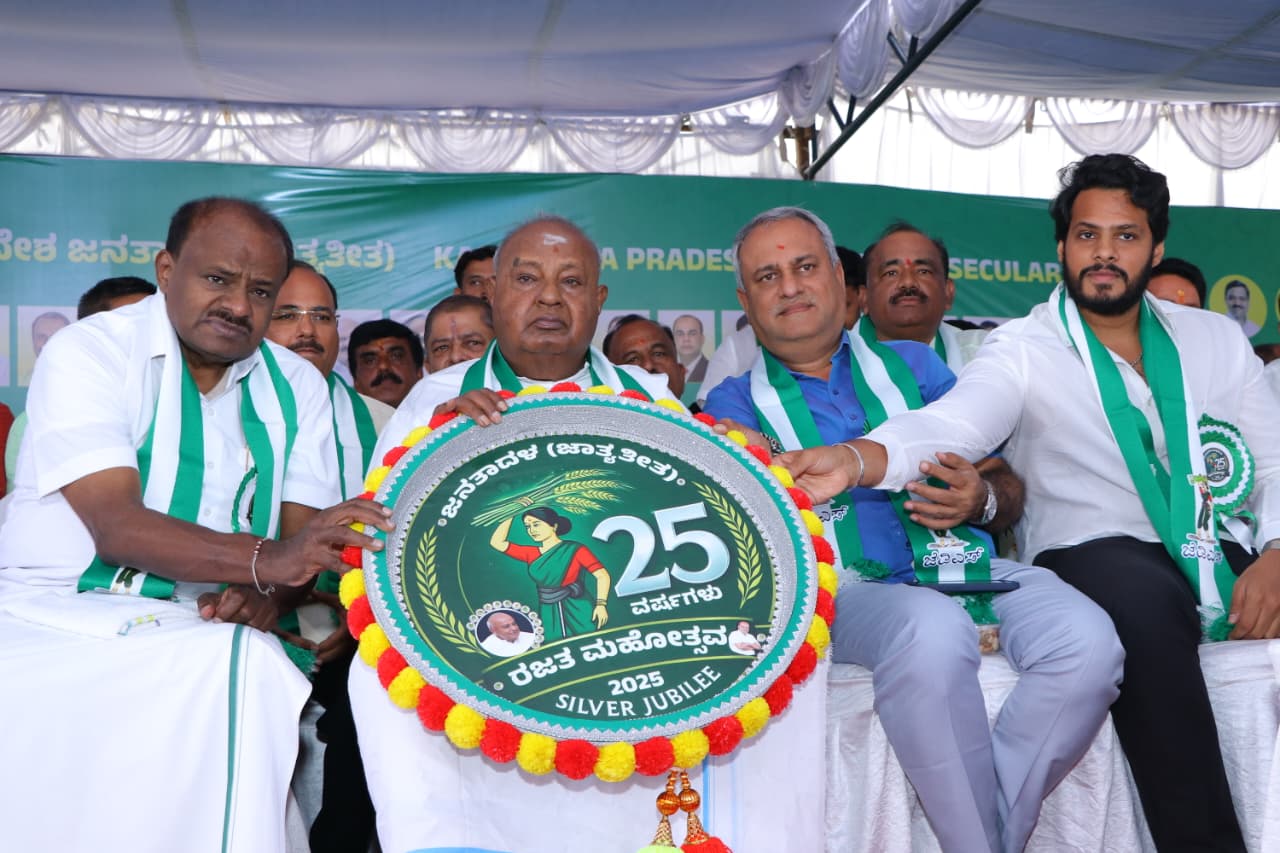 ಜೆಡಿಎಸ್ ಬೆಳ್ಳಿಹಬ್ಬವನ್ನು ಉದ್ಘಾಟಿಸಿ ಕಾರ್ಯಕರ್ತರು, ಮುಖಂಡರನ್ನು ಉದ್ದೇಶಿಸಿ ಭಾಷಣ ಮಾಡಿದ ಮಾಜಿ ಪ್ರಧಾನಿಗಳು; ನಾವು ಎನ್ಡಿಎ ಜತೆ ಇದ್ದೇವೆ. ಮೋದಿ ಅವರ ನೇತೃತ್ವದಲ್ಲಿ ವಿಶ್ವಾಸ ಇಟ್ಟಿದ್ದೇವೆ. ಅವರ ನೇತೃತ್ವದಲ್ಲಿ ಬಲಿಷ್ಠ ಸರ್ಕಾರ ಇದೆ. ಇದನ್ನು ನಮ್ಮ ಕಾರ್ಯಕರ್ತರು, ಮುಖಂಡರು ಯಾರು ಮರೆಯಬಾರದು ಎಂದರು.