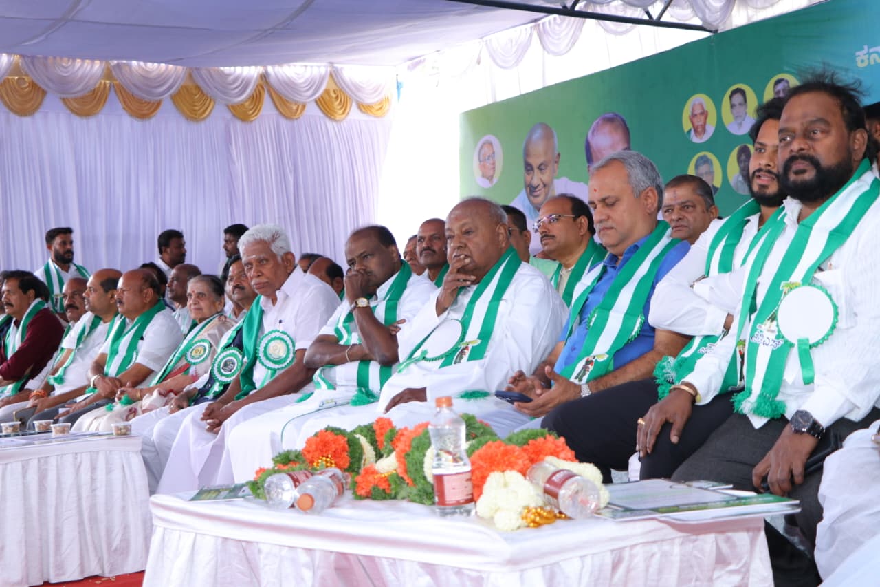 ಉತ್ತರದಲ್ಲಿ ಜೆಡಿಯು, ದಕ್ಷಿಣದಲ್ಲಿ ಜೆಡಿಎಸ್ ಎಂದು ಘೋಷಣೆ ಮೊಳಗಿಸಿದ ದೇವೇಗೌಡರು; ಅಲ್ಲಿ ನಿತೀಶ್ ಕುಮಾರ್, ಇಲ್ಲಿ ಕುಮಾರಸ್ವಾಮಿ ಎಂದು ಒತ್ತಿ ಹೇಳಿದರು. ನಿತೀಶ್ ಅವರು ಮೂವತ್ತು ವರ್ಷದಿಂದಲೂ ರಾಜಕಾರಣದಲ್ಲಿ ಇದ್ದಾರೆ. ಹತ್ತನೇ ಬಾರಿಗೆ ಪ್ರಮಾಣ ಮಾಡಿದ್ದಾರೆ. ಅವರು ಬಹಳ ಸೂಕ್ಷ್ಮವಾಗಿ ರಾಜಕಾರಣ ಮಾಡಿಕೊಂಡಿದ್ದಾರೆ. ಇದನ್ನು ನಾವು ಗಮನದಲ್ಲಿ ಇಟ್ಟುಕೊಂಡು ಕೆಲಸ ಮಾಡಬೇಕು ಎಂದು ಅವರು ಹೇಳಿದರು.
