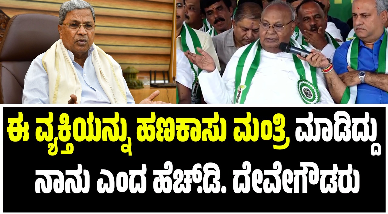 ರಾಮಕೃಷ್ಣ ಹೆಗಡೆ ಅವರು ಎಂಟು ವರ್ಷ ಸಿಎಂ ಆಗಿದ್ದರು. ಅವರು ನಿಮ್ಮನ್ನು ಹಣಕಾಸು ಸಚಿವರನ್ನಾಗಿ ಮಾಡಿದ್ದಾರಾ? ನಿಮ್ಮನ್ನು ಹಣಕಾಸು ಸಚಿವರನ್ನಾಗಿ ಮಾಡಿದ್ದು ಈ ದೇವೇಗೌಡ. ಹೆಗಡೆ ಅಗಲಿ ಬೊಮ್ಮಾಯಿ ಆಗಲಿ ನಿಮ್ಮನ್ನು ಹಣಕಾಸು ಮಂತ್ರಿ ಮಾಡಲಿಲ್ಲ. ನೀವೇನೂ ಮಹಾ ಮೇಧಾವಿ ಆಗಿದ್ದೀರಾ? ನೀವು ಆಕ್ಸ್ಫರ್ಡ್ ವಿವಿಯಲ್ಲಿ ಹಣಕಾಸು ಪದವಿ ಪಡೆದಿದ್ರಾ? ನೀವು ಸುಪ್ರೀಂ ಕೋರ್ಟ್ ಲಾಯರ್ ಏನೂ ಅಲ್ಲ, ಹೈಕೋರ್ಟ್ ನಲ್ಲಿಯೂ ಲಾಯರ್ ಅಲ್ಲ. ಮೈಸೂರಿನಲ್ಲಿ ಎಲ್ಲೋ ಒಂದೆರಡು ಕೇಸು ವಾದ ಮಾಡಿಕೊಂಡು ಇದ್ದವರು. ನಾನು ಬದುಕಿದ್ದೇನೆ, ಸೋನಿಯಾ ಗಾಂಧಿ ಕೂಡ ಬದುಕಿದ್ದಾರೆ. ಸುಳ್ಳು ಹೇಳಬೇಡಿ. ಜೆಡಿಎಸ್ ಪಕ್ಷಕ್ಕೆ ನಿಮ್ಮ ದೇಣಿಗೆ ಹೇಳಿ? ಎಂದು ದೇವೇಗೌಡರು ಸಿದ್ಧರಾಮಯ್ಯ ಅವರನ್ನು ಪ್ರಶ್ನಿಸಿದರು.