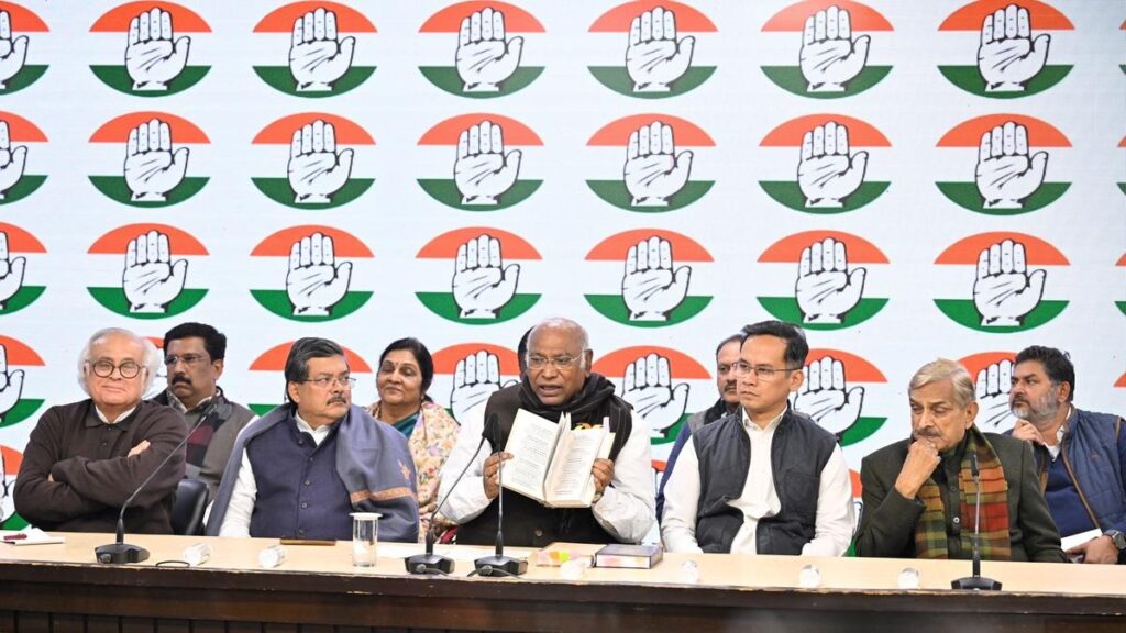 “ಇಂದು, ನಾವು ಪತ್ರಿಕಾಗೋಷ್ಠಿಯನ್ನು ಕರೆದಿದ್ದೇವೆ, ಉದ್ದೇಶವೆಂದರೆ … 75 ವರ್ಷಗಳನ್ನು ಪೂರೈಸಿದ ಸಂವಿಧಾನದ ಪಯಣದ ಬಗ್ಗೆ ಚರ್ಚೆ, ರಾಜಕೀಯ ಪಕ್ಷಗಳ ಸದಸ್ಯರು ತಮ್ಮ ಅಭಿಪ್ರಾಯಗಳನ್ನು ಇಟ್ಟುಕೊಂಡಿದ್ದರು. ಅವರು ಸಂವಿಧಾನದ ಬಗ್ಗೆ ಚೆನ್ನಾಗಿ ಮಾತನಾಡಿದರು, ಕೆಲವರು ಅದನ್ನು ಲೇವಡಿ ಮಾಡಿದರು.” ಖರ್ಗೆ ಇಲ್ಲಿ ಸುದ್ದಿಗೋಷ್ಠಿಯಲ್ಲಿ ತಿಳಿಸಿದರು. ಡಿಸೆಂಬರ್ 17 ರಂದು ರಾಜ್ಯಸಭೆಯಲ್ಲಿ ಸಂವಿಧಾನದ ಮೇಲಿನ ಚರ್ಚೆಗೆ ಉತ್ತರಿಸುವಾಗ ಅಮಿತ್ ಶಾ ಅವರು ಮಾಡಿದ ಕಾಮೆಂಟ್ಗಳಲ್ಲಿ ಒಂದನ್ನು ಖರ್ಗೆ ಉಲ್ಲೇಖಿಸಿದರು.