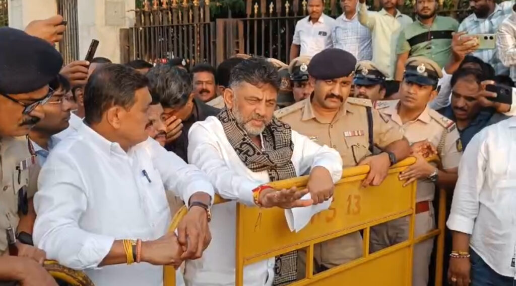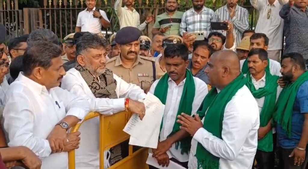 ಈ ವೇಳೆ ನಾವು ಭೂಮಿ ನೀಡಲ್ಲ, ಶಾಸಕರು ರೈತರ ಪರ ಇಲ್ಲ ಎಂದು ರೈತರು ಆಕ್ರೋಶ ವ್ಯಕ್ತಪಡಿಸಿದ್ದಾರೆ. ಈ ವೇಳೆ ರೈತರ ಮೇಲೆ ಡಿಸಿಎಂ ಡಿಕೆಶಿ ಗರಂ ಆಗಿದ್ದಾರೆ. ನೀವು ಧಿಕ್ಕಾರ ಕೂಗೋದು ಬಿಟ್ಟು ಏನು ಮಾಡೋಕೆ ಆಗಲ್ಲ.ರೈತರು ಹೋರಾಟ ಮಾಡಿ, ರಾಜಕೀಯ ಮಾಡಬೇಡಿ. ಹಿಂದೆ ಭೂಮಿ ಸ್ವಾಧೀನ ಮಾಡಿದ್ರಲ್ಲ ಅವರು ನಿಮ್ಮ ಪರ ಇದ್ರಾ.? ಎಂದು ಖಾರವಾಗಿ ಪ್ರಶ್ನಿಸಿದ್ದಾರೆ.