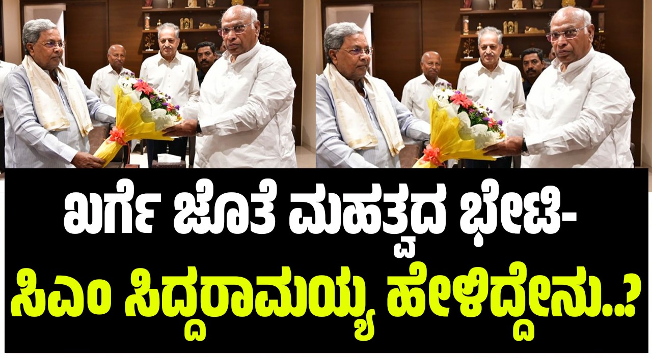 ಬೆಂಗಳೂರು: ಸಿಎಂ ಬದಲಾವಣೆ, ಸಂಪುಟ ಪುನಾರಚನೆ ಚರ್ಚೆ ಮಧ್ಯೆ ಎಐಸಿಸಿ ಅಧ್ಯಕ್ಷ ಮಲ್ಲಿಕಾರ್ಜುನ ಖರ್ಗೆ ಮತ್ತು ಸಿಎಂ ಸಿದ್ದರಾಮಯ್ಯ ಭೇಟಿಯಾಗಿದ್ದು, ರಾಜ್ಯ ರಾಜಕಾರಣದಲ್ಲಿ ಮಹತ್ವದ ಬೆಳವಣಿಗೆ ನಡೆದಿದೆ.