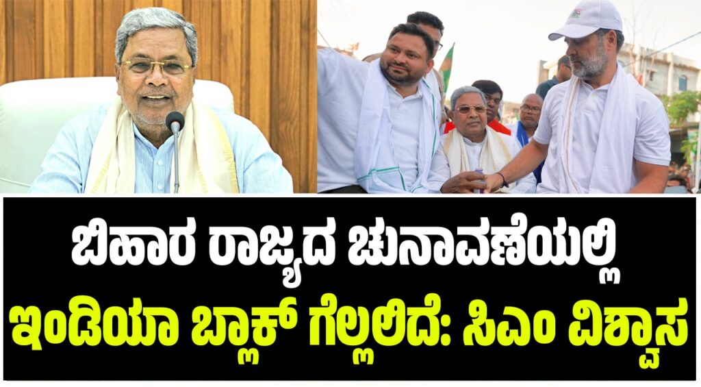 ಬಿಹಾರ ರಾಜ್ಯದ ಚುನಾವಣೆಯಲ್ಲಿ ಇಂಡಿಯಾ ಬ್ಲಾಕ್ ಗೆಲ್ಲಲಿದೆ ಎಂದು ಮುಖ್ಯಮಂತ್ರಿ ಸಿದ್ದರಾಮಯ್ಯ ವಿಶ್ವಾಸ ವ್ಯಕ್ತಪಡಿಸಿದರು. ಅವರು ಇಂದು ಮೈಸೂರು ವಿಮಾನ ನಿಲ್ದಾಣದಲ್ಲಿ ಮಾಧ್ಯಮದವರೊಂದಿಗೆ ಮಾತನಾಡಿದರು.