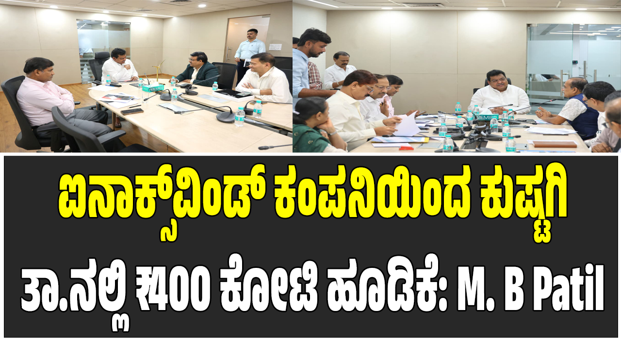 ಪವನ ವಿದ್ಯುತ್ ಕ್ಷೇತ್ರದಲ್ಲಿ ಅಗತ್ಯವಾಗಿ ಬೇಕಾಗಿರುವ ದೈತ್ಯಾಕಾರದ ಬ್ಲೇಡ್ಗಳು ಮತ್ತು ಗೋಪುರಗಳ ಉತ್ಪಾದನೆಗೆ ಹೆಸರಾಗಿರುವ ಐನಾಕ್ಸ್ವಿಂಡ್ ಕಂಪನಿಯು ಕೊಪ್ಪಳ ಜಿಲ್ಲೆಯ ಕುಷ್ಟಗಿ ತಾಲ್ಲೂಕಿನ ಕ್ಯಾದಿಗುಪ್ಪ ಕೈಗಾರಿಕಾ ಪ್ರದೇಶದಲ್ಲಿ ₹400 ಕೋಟಿ ಬಂಡವಾಳ ಹೂಡಲಿದೆ ಎಂದು ಬೃಹತ್ ಮತ್ತು ಮಧ್ಯಮ ಕೈಗಾರಿಕಾ ಸಚಿವ ಎಂ ಬಿ ಪಾಟೀಲ ಬುಧವಾರ ತಿಳಿಸಿದ್ದಾರೆ.