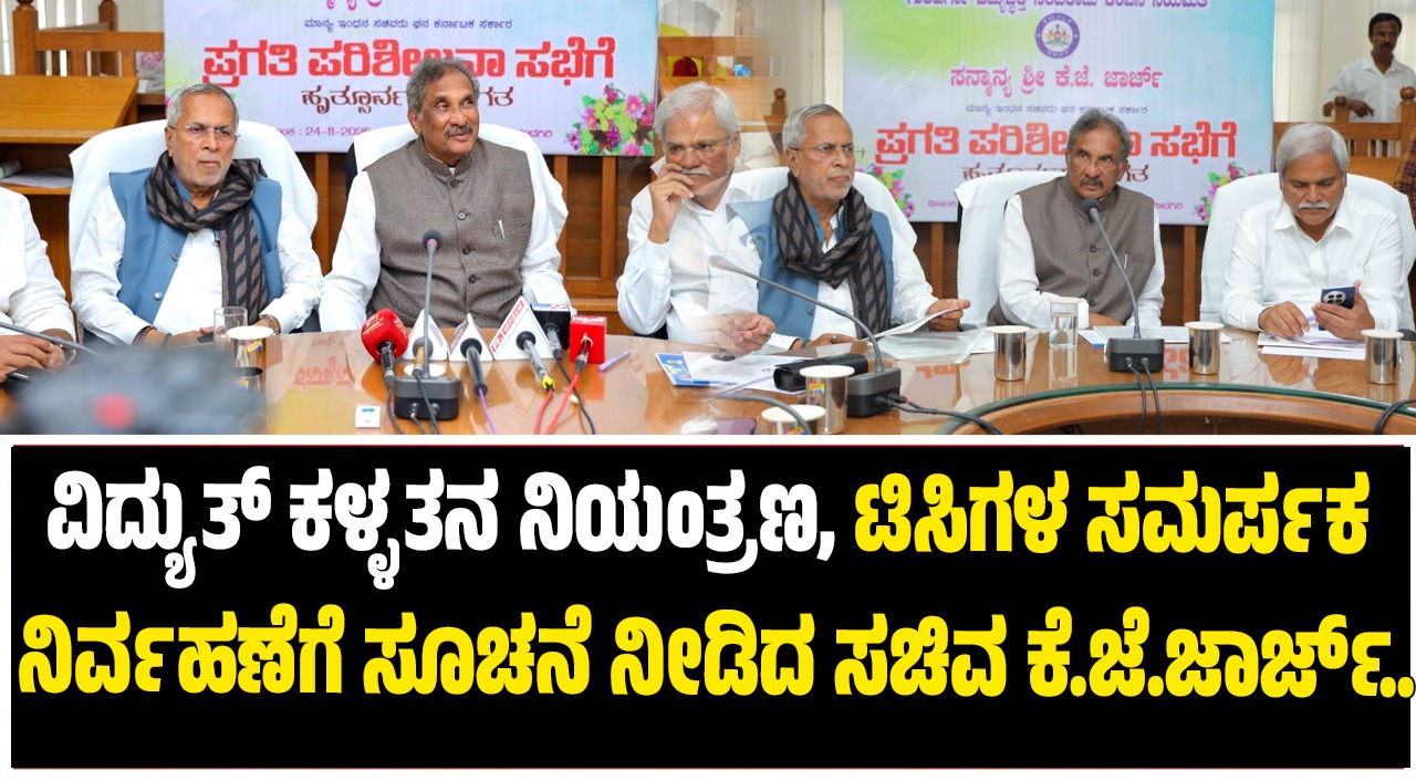 ಅನಧಿಕೃತವಾಗಿ ಹುಕ್ ಗಳ ಮೂಲಕ ನಡೆಯುವ ವಿದ್ಯುತ್ ಕಳ್ಳತನ ತಡೆಗಟ್ಟಲು ಮತ್ತು ಅಧಿಕ ಲೋಡ್ ನಿಂದಾಗಿ ಟ್ರಾನ್ಸ್ ಫಾರ್ಮರ್ ಗಳು ಸುಟ್ಟು ಹೋಗುವುದನ್ನು ತಡೆಯಲು ತ್ವರಿತ ಕ್ರಮ ಜರುಗಿಸುವಂತೆ ಇಂಧನ ಸಚಿವ ಕೆ.ಜೆ.ಜಾರ್ಜ್ ಇಲಾಖೆ ಅಧಿಕಾರಿಗಳಿಗೆ ಸೂಚಿಸಿದ್ದಾರೆ. ಇಲ್ಲಿನ ಜಿಲ್ಲಾಧಿಕಾರಿಗಳ ಕಚೇರಿ ಸಭಾಂಗಣದಲ್ಲಿ ಸೋಮವಾರ ಕರ್ನಾಟಕ ವಿದ್ಯುತ್ ಪ್ರಸರಣ ನಿಗಮ ನಿಯಮಿತ ಹಾಗೂ ಗುಲ್ಬರ್ಗ ವಿದ್ಯುತ್ ಸರಬರಾಜು ಕಂಪನಿ (ಜೆಸ್ಕಾಂ) ಸಹಯೋಗದಲ್ಲಿ ಇಲಾಖೆಗೆ ಸಂಬಂಧಿಸಿದಂತೆ ಆಯೋಜಿಸಿದ್ದ ಜನಪ್ರತಿನಿಧಿಗಳು ಹಾಗೂ ಅಧಿಕಾರಿಗಳೊಂದಿಗಿ ನಪ್ರಗತಿ ಪರಿಶೀಲನಾ ಸಭೆಯಲ್ಲಿ ಅವರು ಮಾತನಾಡಿದರು.
