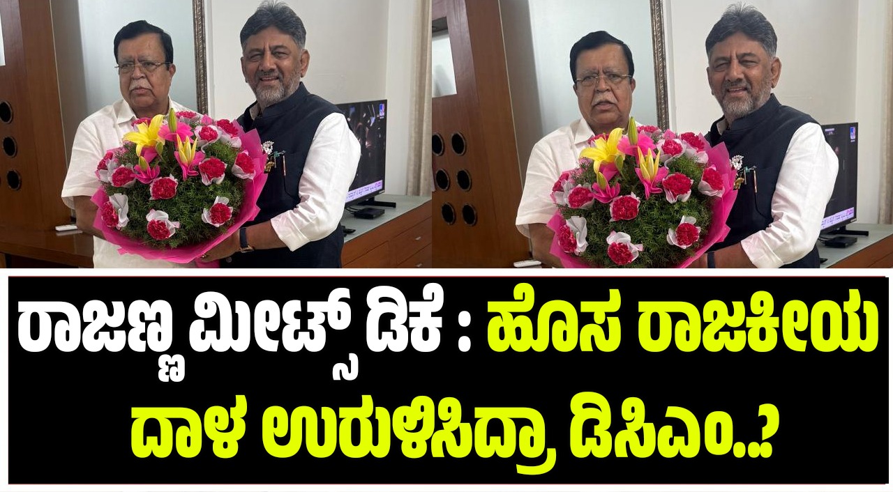 ಸಿಎಂ ಸಿದ್ದರಾಮಯ್ಯ ಪರ ಸದಾ ಬ್ಯಾಟ್ ಬೀಸುತ್ತಿದ್ದ ರಾಜಣ್ಣ ಇಂದು ದಿಢೀರ್ ಡಿಕೆ ಶಿವಕುಮಾರ್ ಅವರನ್ನು ಭೇಟಿಯಾಗಿರುವುದು ಸಾಕಷ್ಟು ಕುತೂಹಲ ಮೂಡಿಸಿದೆ. ಕಾಂಗ್ರೆಸ್ ಪಕ್ಷದಲ್ಲಿನ ನಾಯಕತ್ವ ಬದಲಾವಣೆಯ ವಿಚಾರದಲ್ಲಿ ರಾಜಣ್ಣ ಅನೇಕ ಸಲ ಡಿಕೆ ಶಿವಕುಮಾರ್ಗೆ ಕೌಂಟರ್ ನೀಡಿದ್ದರು. ಹನಿಟ್ರ್ಯಾಪ್ ಕೇಸ್ನಲ್ಲೂ ಪರೋಕ್ಷವಾಗಿಯೇ ರಾಜಣ್ಣ ಡಿಸಿಎಂ ವಿರುದ್ಧ ಆರೋಪಿಸಿದ್ದರು. ಆದರೆ ಇದೀಗ ಇಬ್ಬರೂ ನಾಯಕರು ಒಂದೇ ಫೋಟೋನಲ್ಲಿ ಕಾಣಿಸಿಕೊಂಡಿರುವುದು ರಾಜ್ಯ ರಾಜಕೀಯದಲ್ಲಿ ಸಾಕಷ್ಟು ಸಂಚಲನ ಮೂಡಿಸಿದೆ.