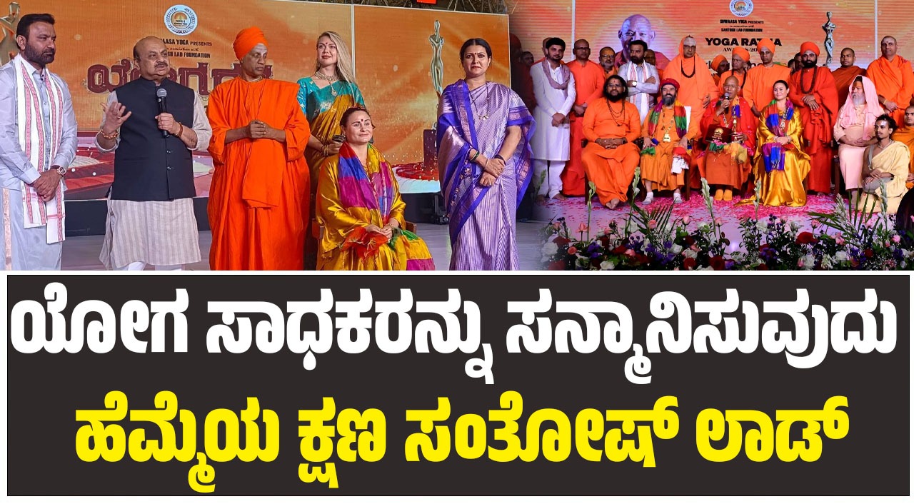 ಬೆಂಗಳೂರು, ಜೂನ್‌ 29: ಅಂತರರಾಷ್ಟ್ರೀಯ ಯೋಗ ದಿನಾಚರಣೆ ಅಂಗವಾಗಿ ಸಂತೋಷ್ ಲಾಡ್ ಫೌಂಡೇಶನ್ ಹಾಗೂ ಶ್ವಾಸಯೋಗ ಸಂಸ್ಥೆ ಸಹಯೋಗದಲ್ಲಿ ಬೆಂಗಳೂರಿನ ಅರಮನೆ ಮೈದಾನದಲ್ಲಿ ಹಮ್ಮಿಕೊಂಡಿದ್ದ ಯೋಗ ರತ್ನ -2025 ಪ್ರಶಸ್ತಿ ಪ್ರದಾನ ಸಮಾರಂಭ ಅಭೂತಪೂರ್ವವಾಗಿ ನೆರವೇರಿತು.
