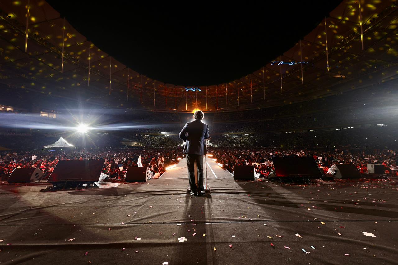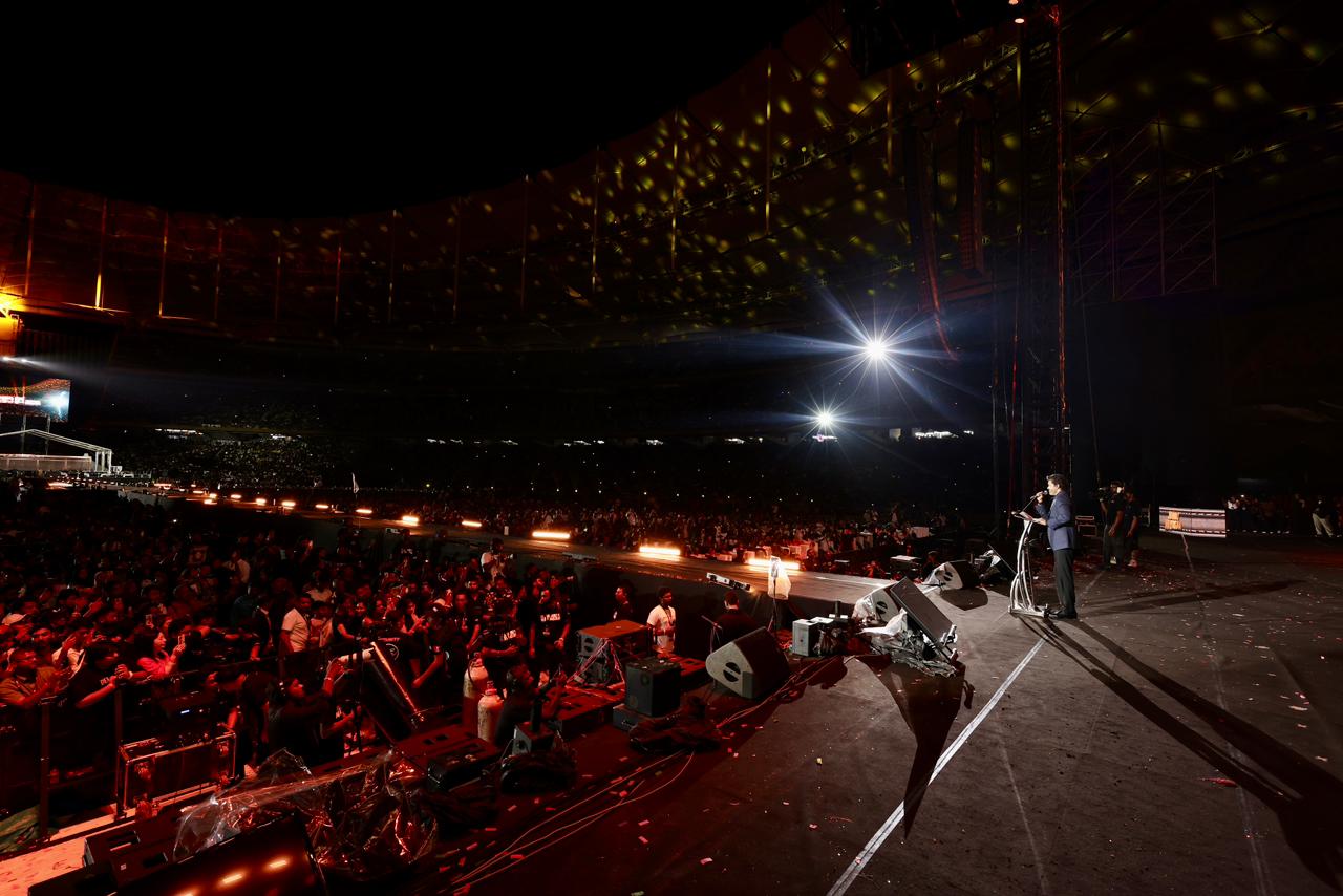 ನಟ ಪ್ರಭುದೇವ ಅವರು ವಿಜಯ್ ಜೊತೆಗೂಡಿ ಐಕಾನಿಕ್ ‘ಪೋಕ್ಕಿರಿ’ ಸ್ಟೆಪ್ ಹಾಕಿ ಅಭಿಮಾನಿಗಳನ್ನು ರೋಮಾಂಚನಗೊಳಿಸಿದರು. ಸಂಗೀತ ನಿರ್ದೇಶಕ ಅನಿರುದ್ಧ್ ರವಿಚಂದರ್ ಅವರು ‘ಯಾರು ಪೆಟ್ರ ಮಗನೋ’ ಹಾಡಿನ ಮೂಲಕ ಪ್ರೇಕ್ಷಕರನ್ನು ಒಗ್ಗೂಡಿಸಿದರು. ಅಲ್ಲದೆ, ಬಿಡುಗಡೆಯಾಗದ “ರಾವಣಮಗನ್” ಹಾಡಿನ ಪ್ರದರ್ಶನವು ಕ್ರೀಡಾಂಗಣದ ಶಕ್ತಿಯನ್ನು ಉತ್ತುಂಗಕ್ಕೆ ಏರಿಸಿತು.