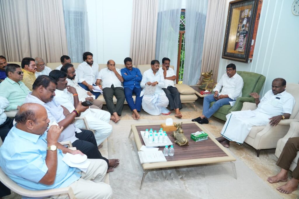 ಬೆಂಗಳೂರು: ಪಕ್ಷ ಸಂಘಟನೆ ಹಾಗೂ ಮುಂಬರುವ ವಿವಿಧ ಚುನಾವಣೆಗಳಲ್ಲಿ ಅನುಸರಿಸಬೇಕಾದ ಕಾರ್ಯತಂತ್ರದ ಬಗ್ಗೆ ಕೇಂದ್ರ ಸಚಿವ ಹೆಚ್.ಡಿ. ಕುಮಾರಸ್ವಾಮಿ ಅವರ ಉಪಸ್ಥಿತಿಯಲ್ಲಿ ಜೆಡಿಎಸ್ ಕೋರ್ ಕಮಿಟಿ (corecommittee) ಹಾಗೂ ಶಾಸಕರ ಸಭೆ ನಡೆಯಿತು.