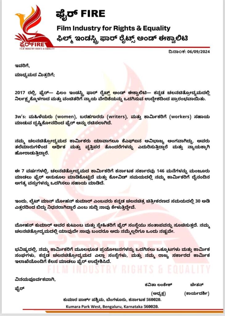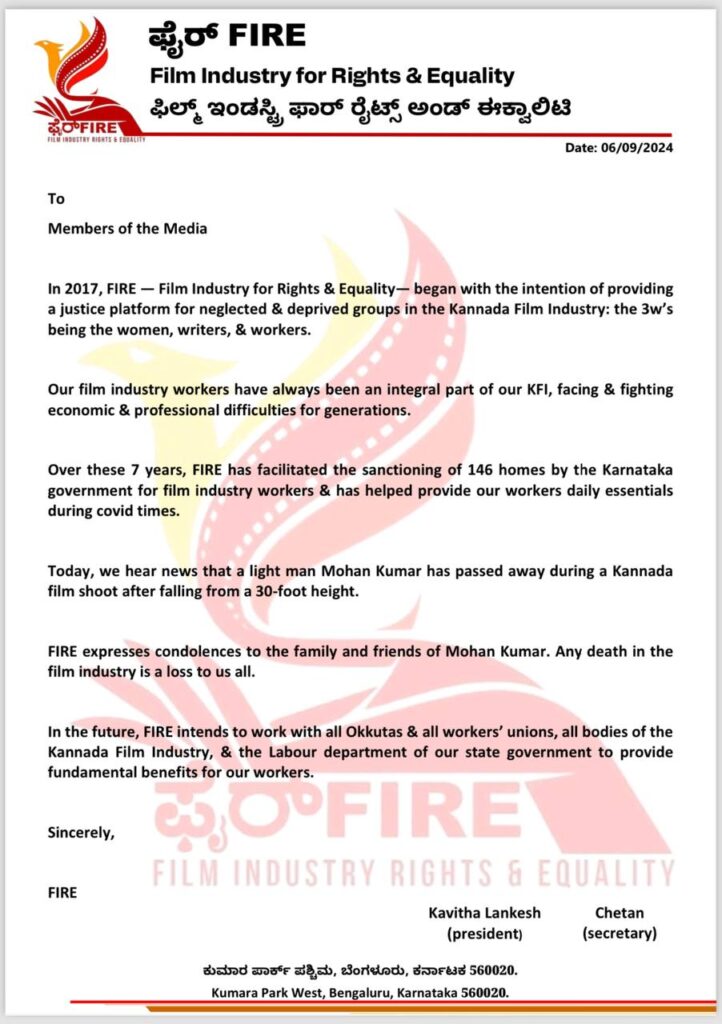 16ನೇ ತಾರೀಖಿನ ಸಭೆಗೆ ನಾವು ಫೈರ್ (FIRE) ಸಂಘವನ್ನ ಕರೆಯಲ್ಲ. ಅಧಿಕೃತ ಆಹ್ವಾನ ಇಲ್ಲ.ಒಳ್ಳೆ ಉದ್ದೇಶದಿಂದ 16ನೇ ತಾರೀಖಿನ ಸಭೆಗೆ ಎಲ್ಲ ನಟಿಯರು ಬರಬೇಕು.ಮುಕ್ತವಾಗಿ ಸಮಸ್ಯೆ ಹೇಳಿಕೊಳ್ಳಲಿ.ಫೈರ್ ಸಂಸ್ಥೆ ಮತ್ತು ವಾಣಿಜ್ಯ ಮಂಡಳಿಗೂ ಸಂಬಂಧ ಇಲ್ಲ. ಇಲ್ಲಿಯವರಿಗೆ ವಾಣಿಜ್ಯ ಮಂಡಳಿಗೆ ಯಾವುದೇ ರೀತಿಯ ದೂರು ಬಂದಿಲ್ಲ ಎಂದಿದ್ದಾರೆ.