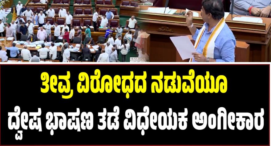 ವಿಪಕ್ಷಗಳ ತೀವ್ರ ವಿರೋಧದ ನಡುವೆಯೂ ಕರ್ನಾಟಕ ವಿಧಾನಸಭೆಯಲ್ಲಿ ಇಂದು ದ್ವೇಷ ಭಾಷಣ (Hate Speech Bill) ತಡೆ ವಿಧೇಯಕ ಅಂಗೀಕಾರ ಮಾಡಲಾಗಿದೆ. ವಿಪಕ್ಷ ಸದಸ್ಯರ ತೀವ್ರ ವಿರೋಧ ಮತ್ತು ಗದ್ದಲದ ನಡುವೆಯೂ ಸ್ಪೀಕರ್ ಯು.ಟಿ ಖಾದರ್ ಈ ಬಿಲ್ ಅಂಗೀಕಾರ ಮಾಡಿದ್ದಾರೆ.