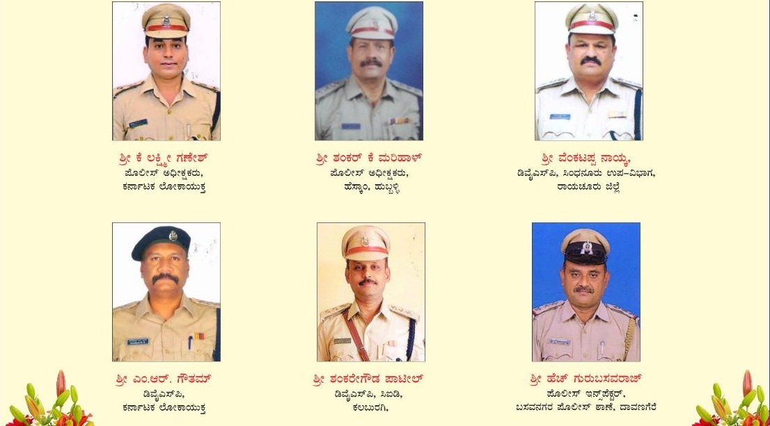ಪೊಲೀಸ್ ಅಧಿಕಾರಿಗಳಾದ ಲೋಕಾಯುಕ್ತ ಎಸ್ಪಿ ಕೆ.ಲಕ್ಷ್ಮೀ ಗಣೇಶ್, ಹೆಸ್ಕಾಂ ಎಸ್ಪಿ ಶಂಕರ್. ಕೆ. ಮರಿಹಾಳ, ಸಿಂಧನೂರು ಉಪವಿಭಾಗದ ಡಿವೈಎಸ್ಪಿ ವೆಂಕಟಪ್ಪ ನಾಯ್ಕ, ಲೋಕಾಯುಕ್ತ ಡಿವೈಎಸ್ಪಿ ಎಂ.ಆರ್.ಗೌತಮ್, ಕಲಬುರಗಿ ಸಿಐಡಿ ಡಿವೈಎಸ್ಪಿ ಶಂಕರಗೌಡ ಪಾಟೀಲ್, ದಾವಣಗೆರೆ ಬಸವನಗರ ಠಾಣಾಧಿಕಾರಿ ಎಚ್. ಗುರು ಬಸವರಾಜ್ ಪ್ರಶಸ್ತಿಗೆ ಭಾಜನವಾಗಿರುವ ಅಧಿಕಾರಿಗಳು.